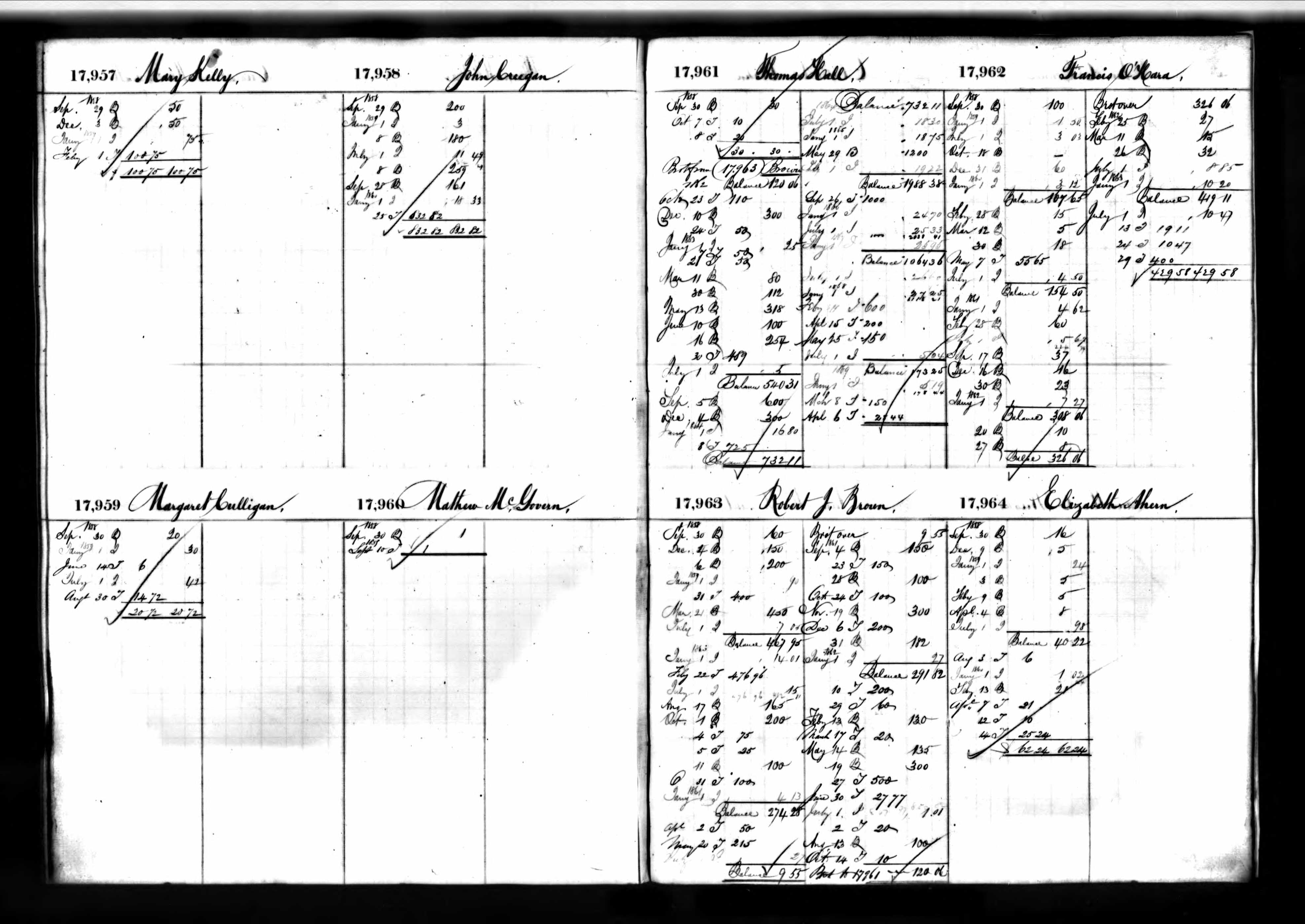 John Creegan's Deposit Ledger