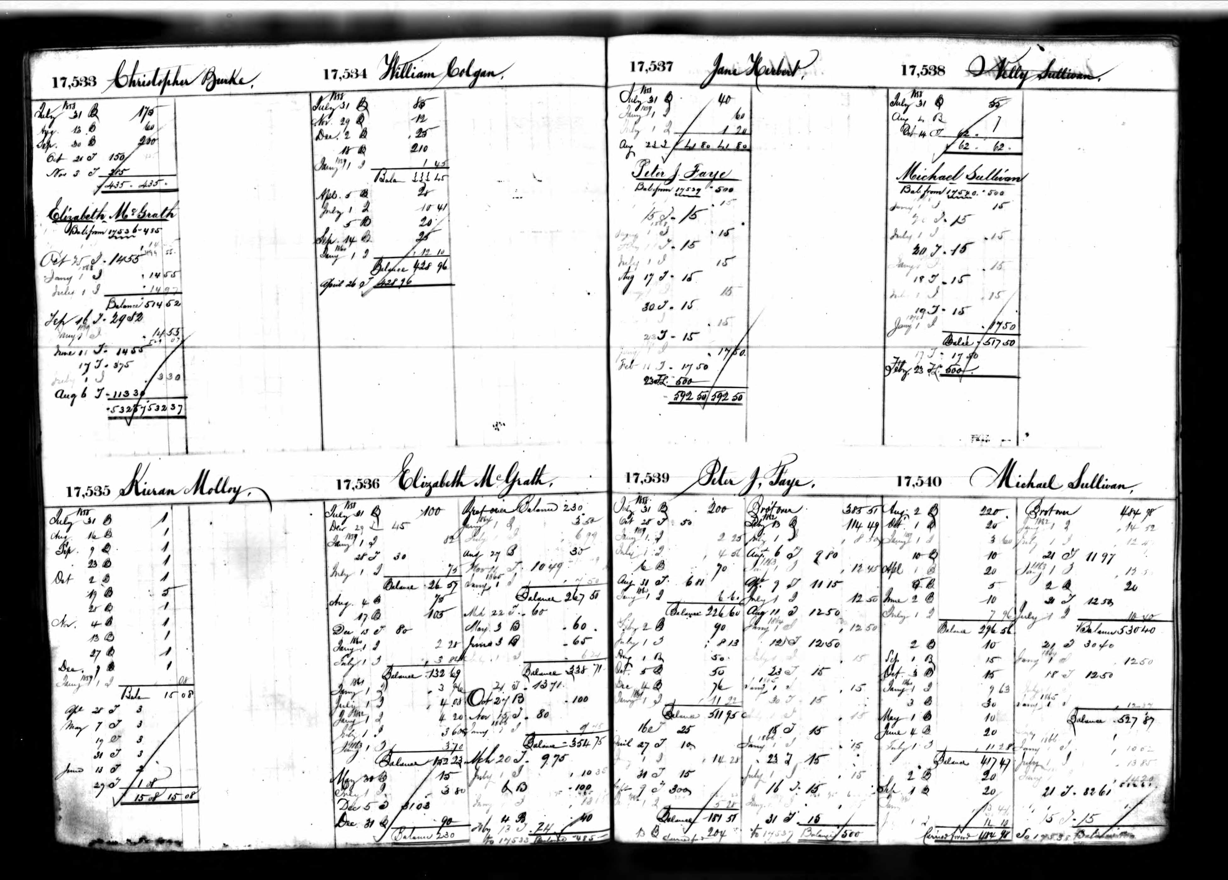 Peter J. Faye's Deposit Ledger