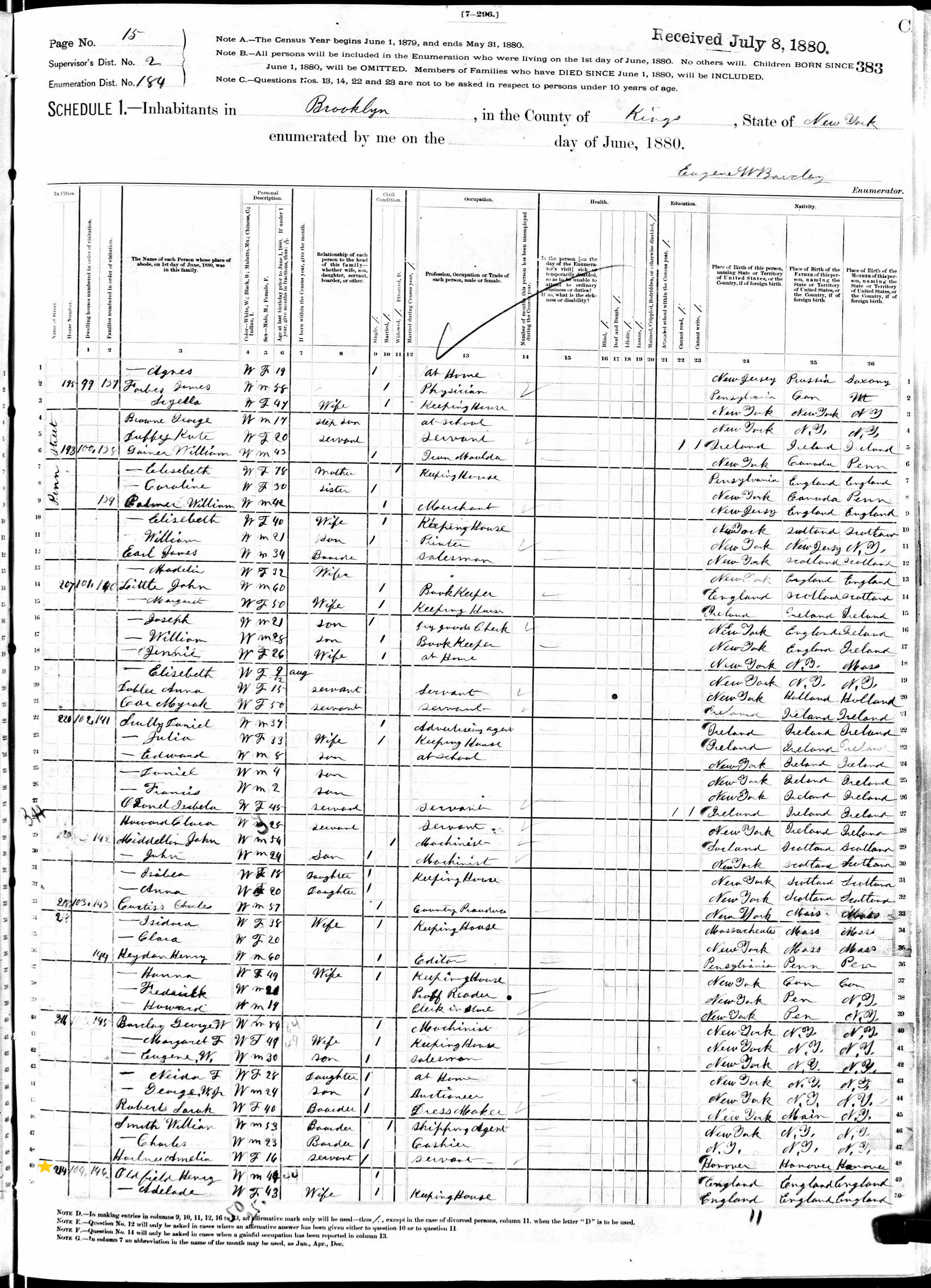 Henry Oldfield; 1880 Census (1)