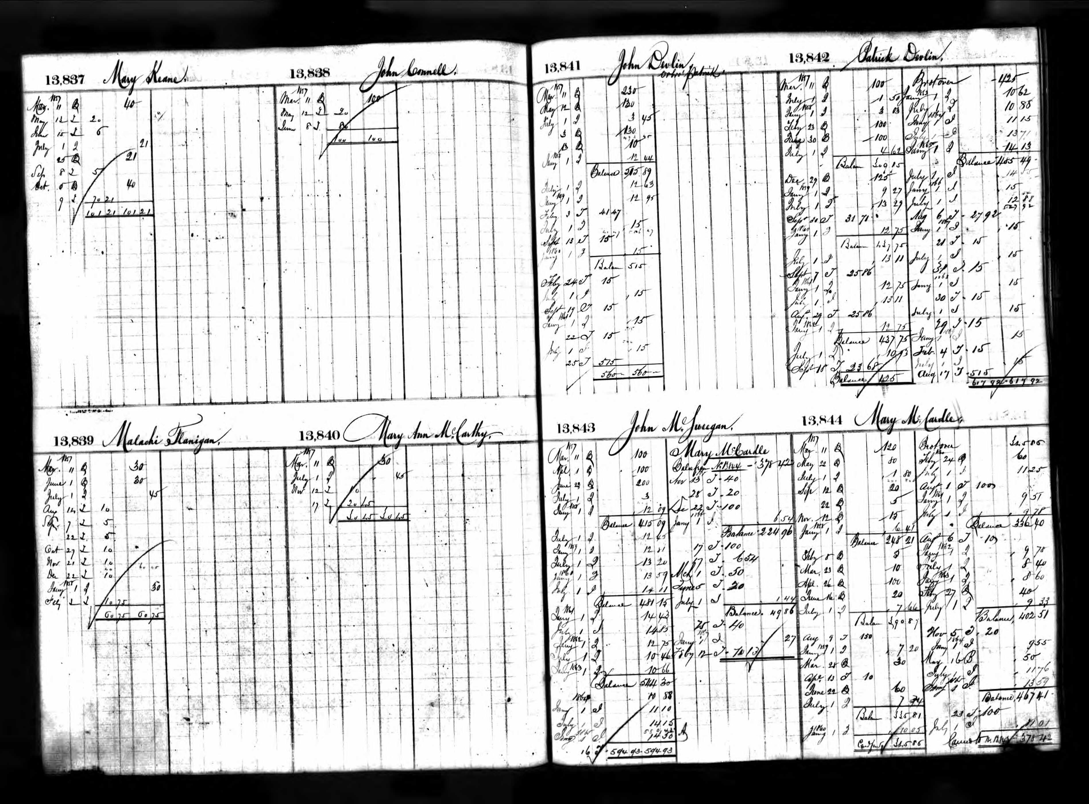 Malachi Flanigan's Deposit Ledger