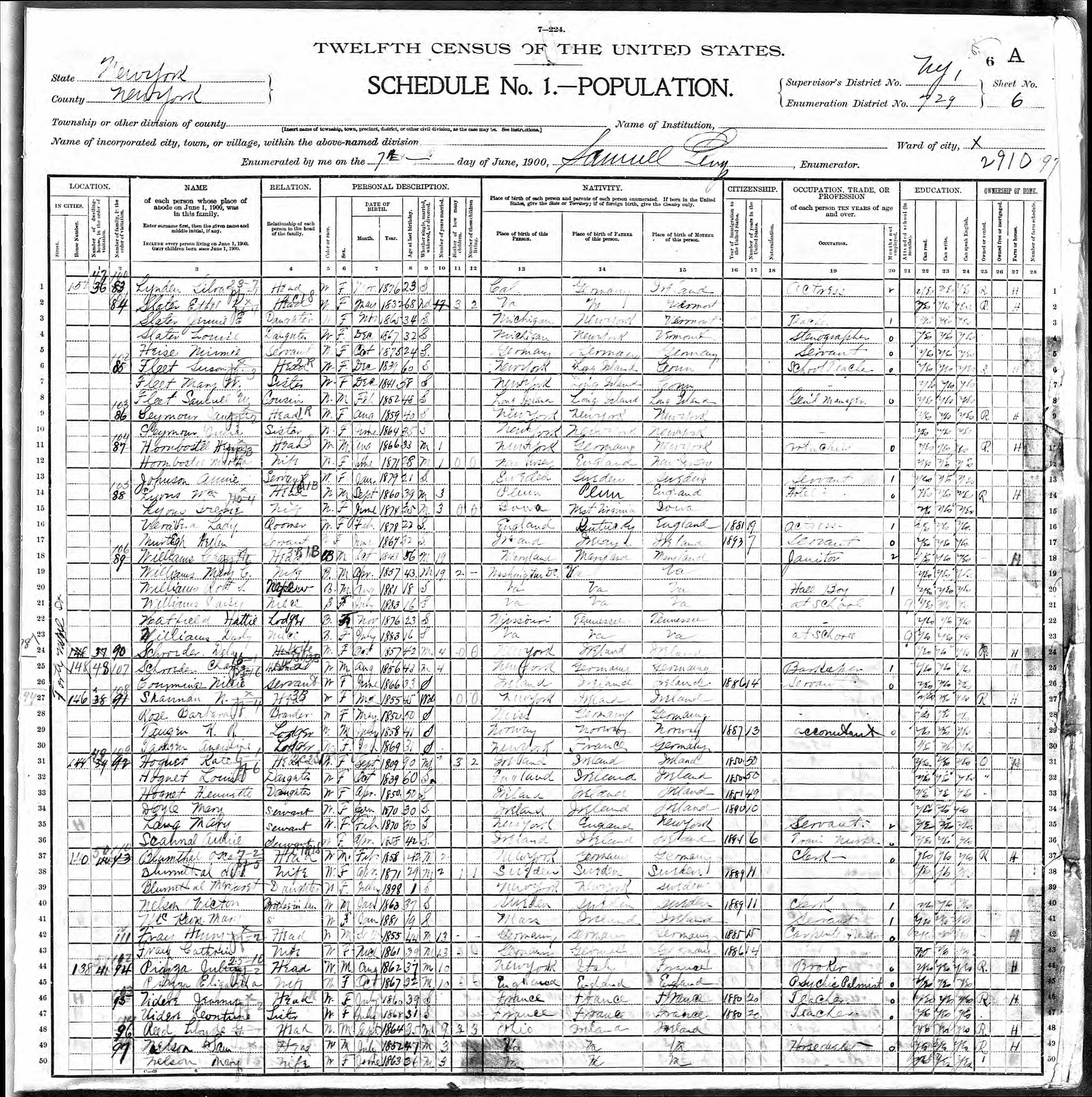 Kate Hoguet; 1900 Census