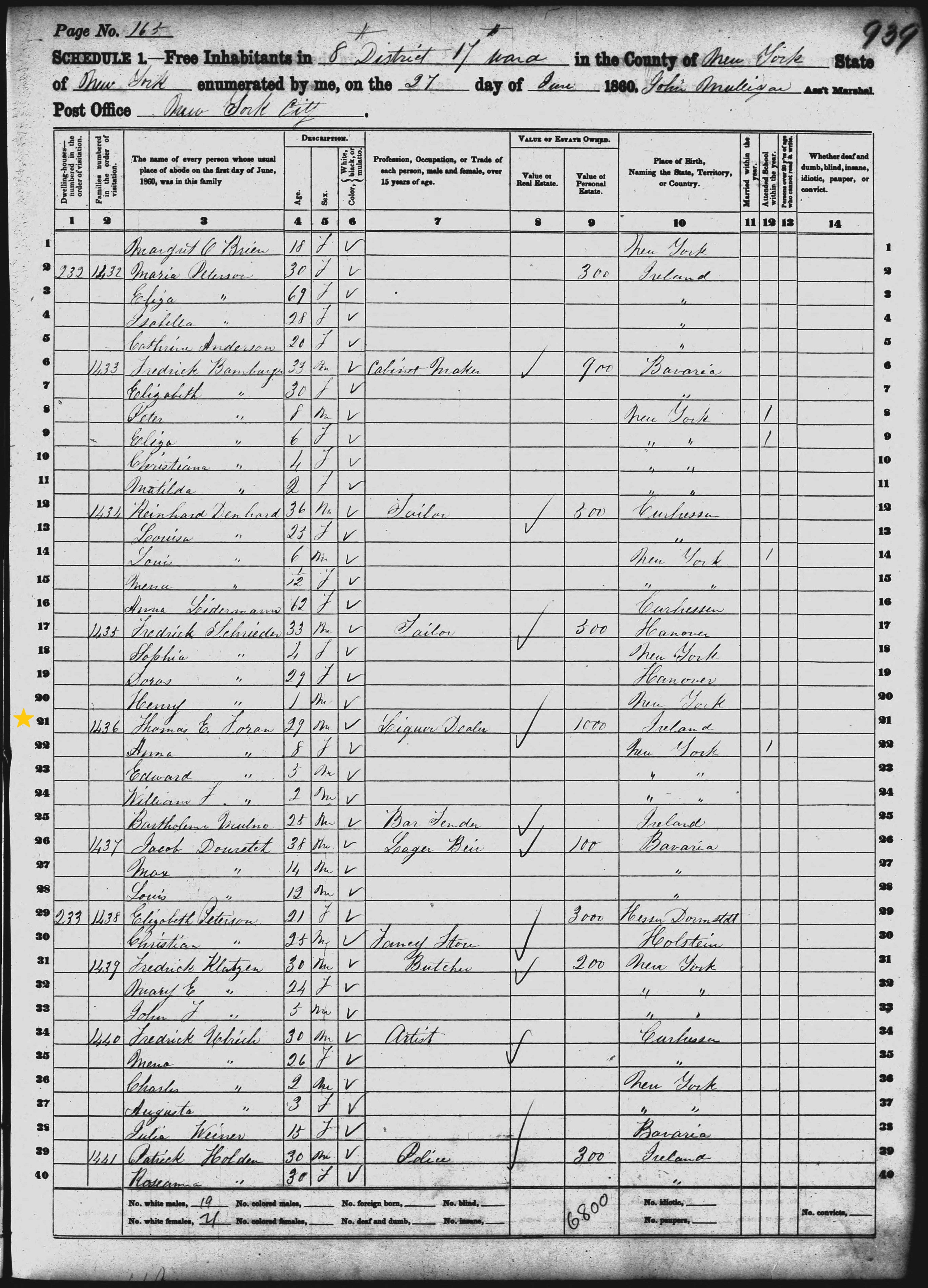 Thomas E. Foran; 1860 Census