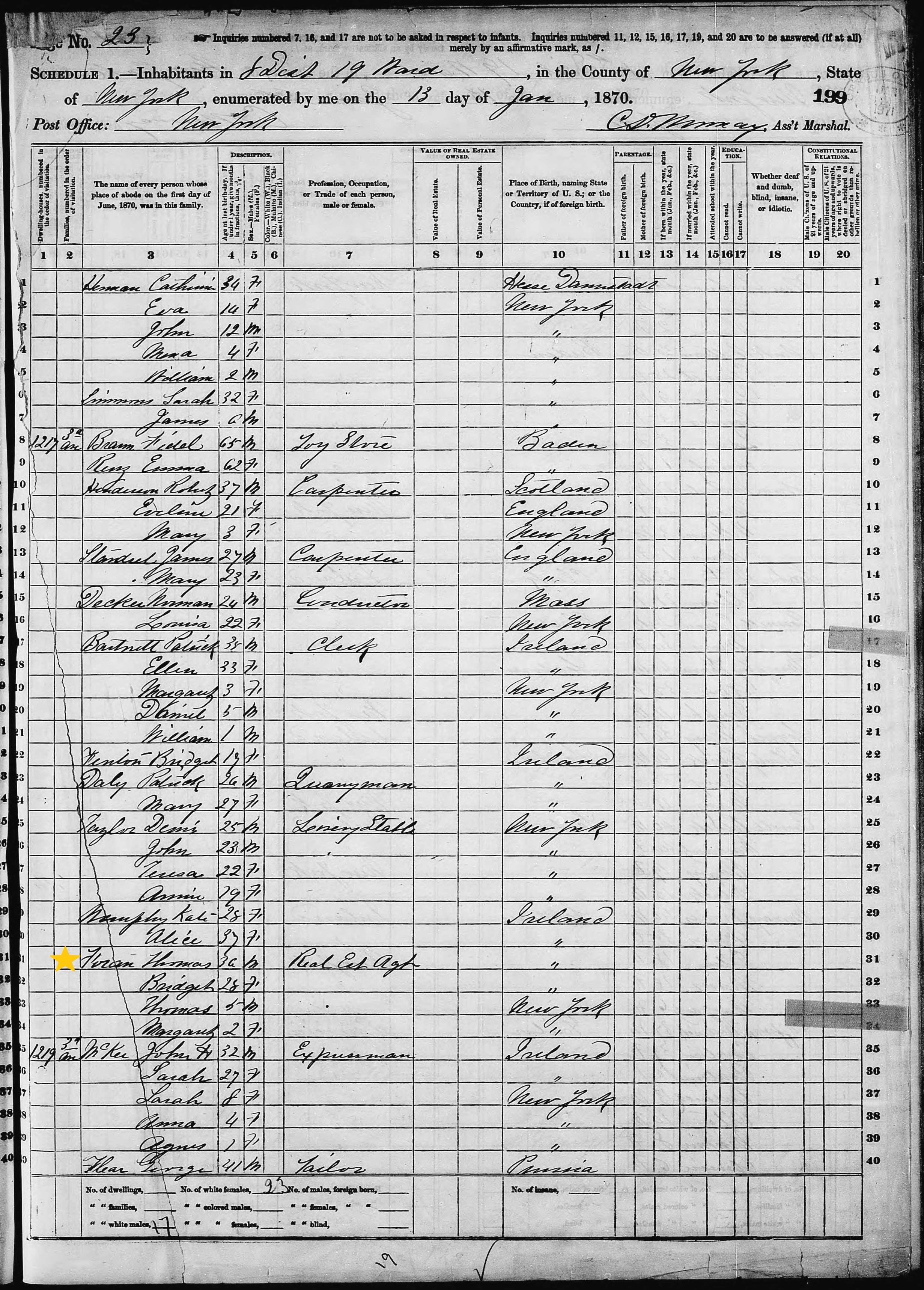Thomas E. Foran; 1870 Census