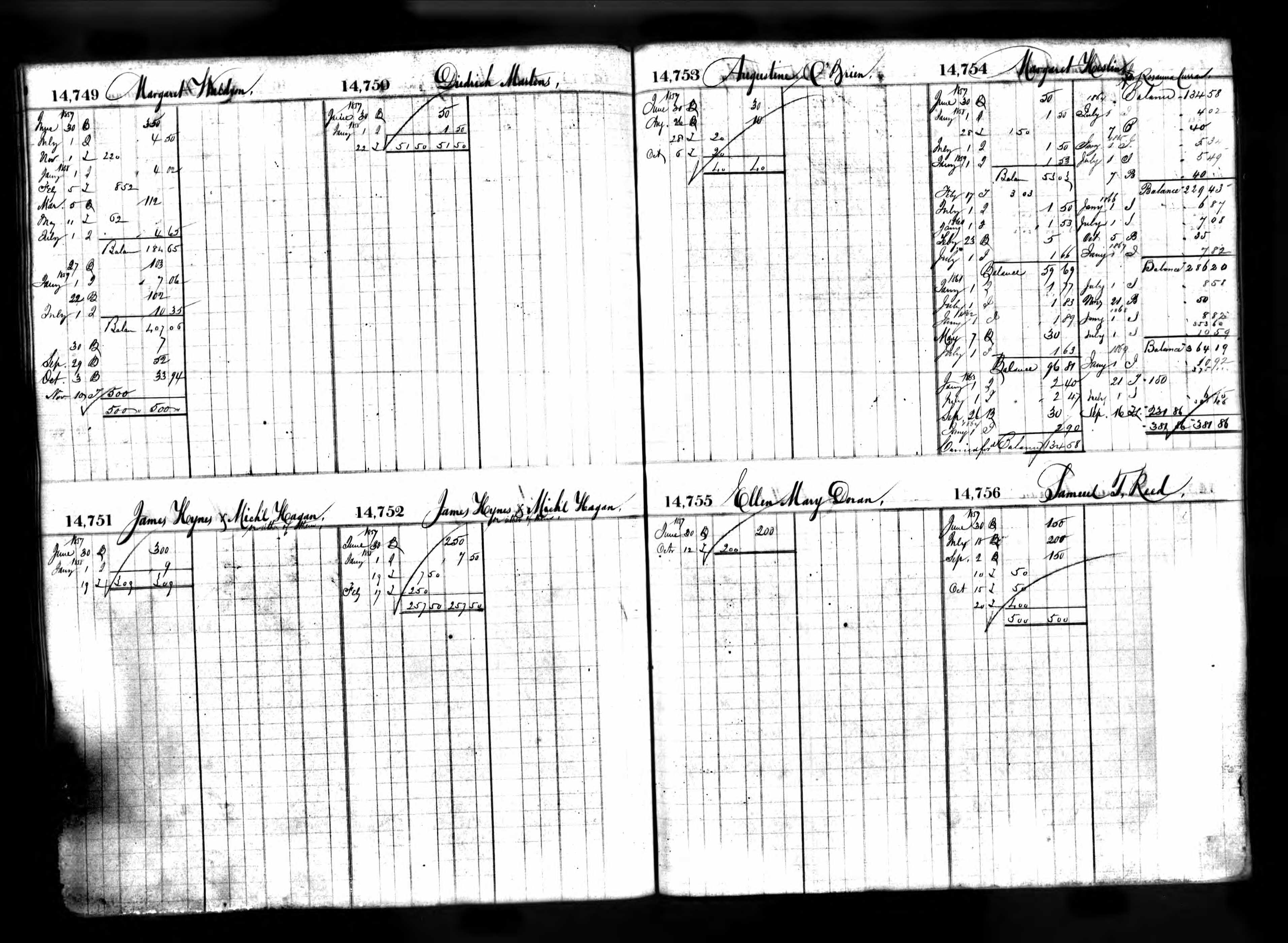 Augustus O'Brien's Deposit Ledger