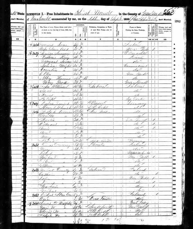 Second page of a two page document from the 1850 NY census. Rowe is identified