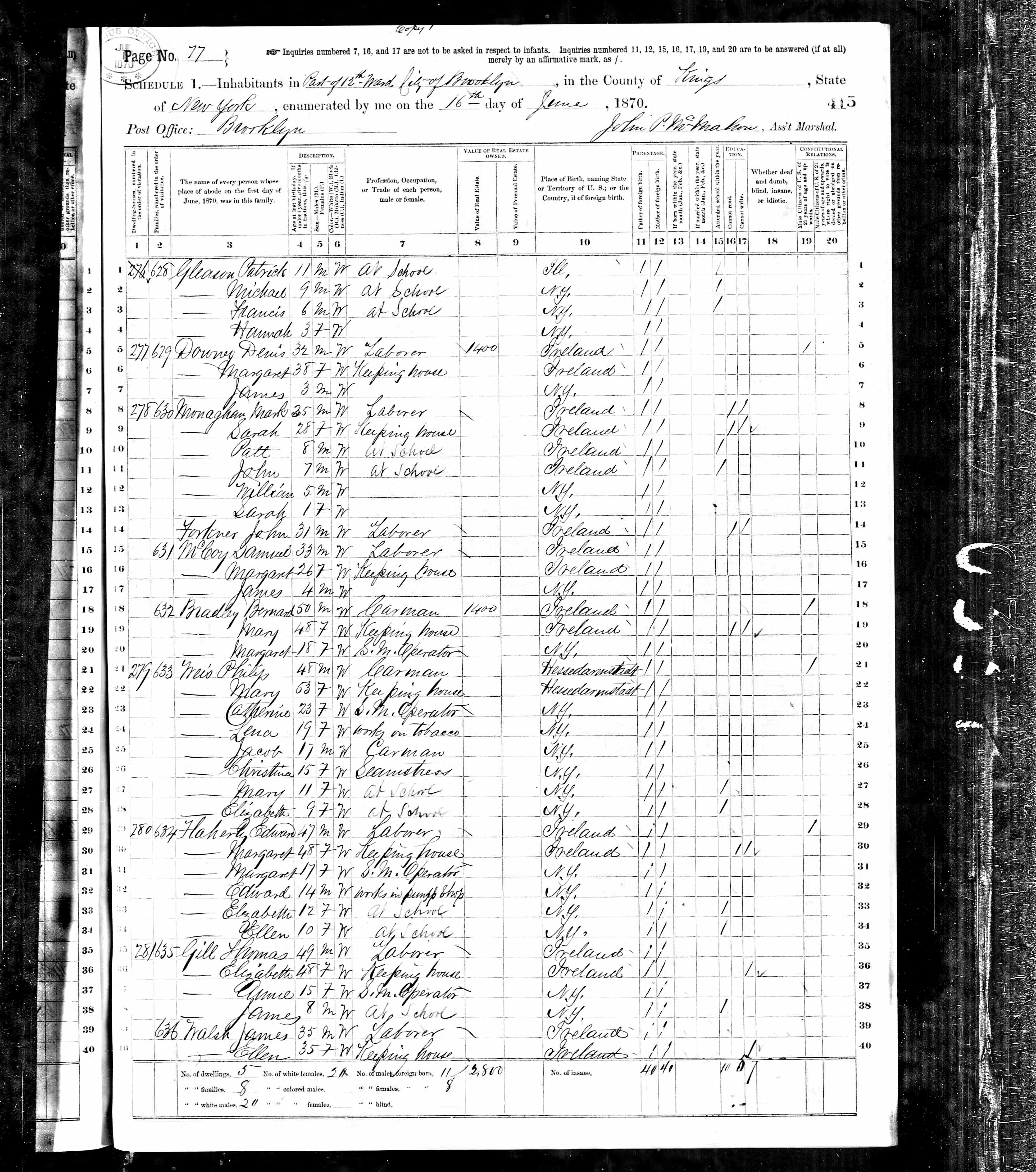 Margaret Flaherty; 1870 Census