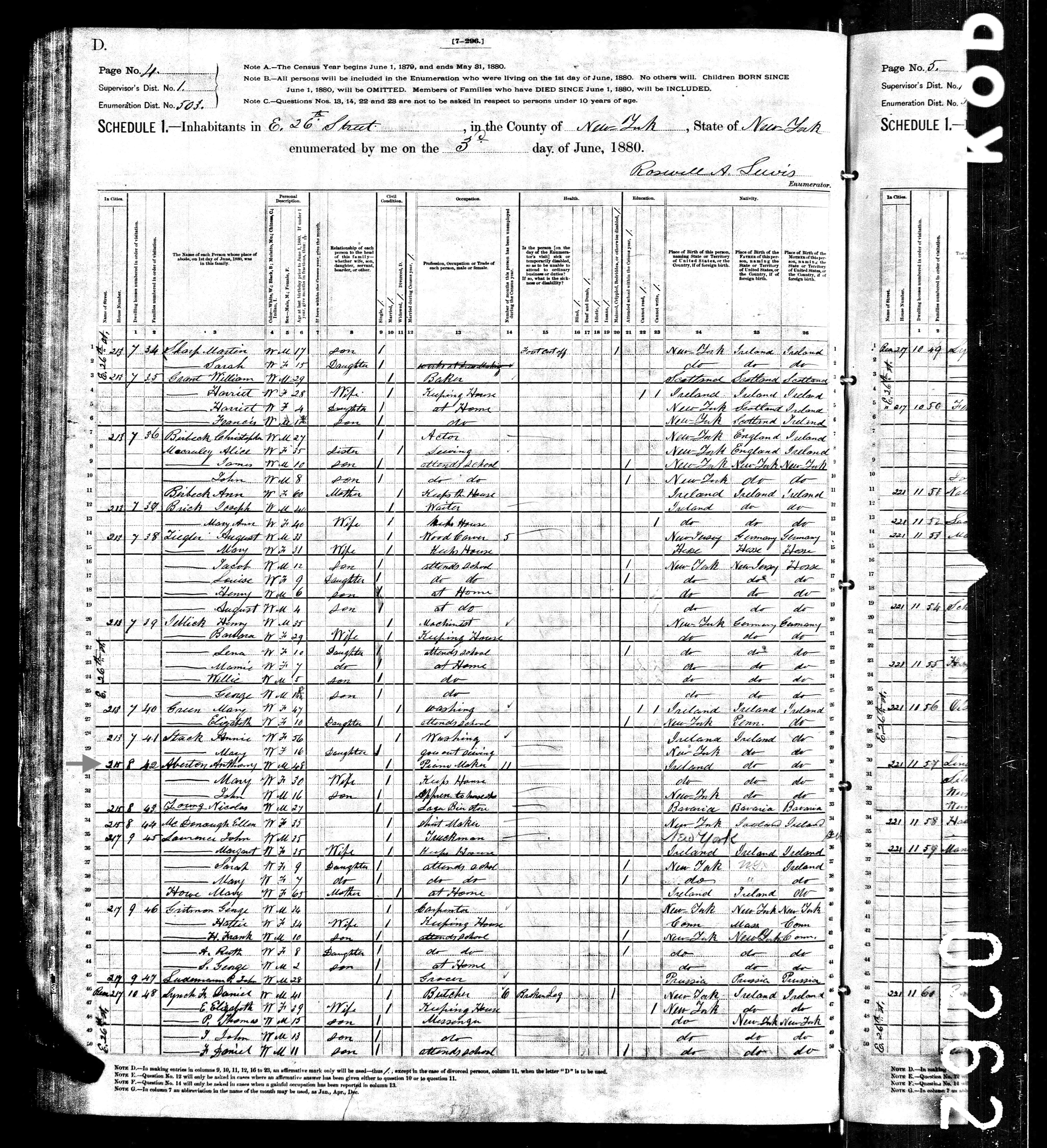 Anthony Aberton; 1880 Census
