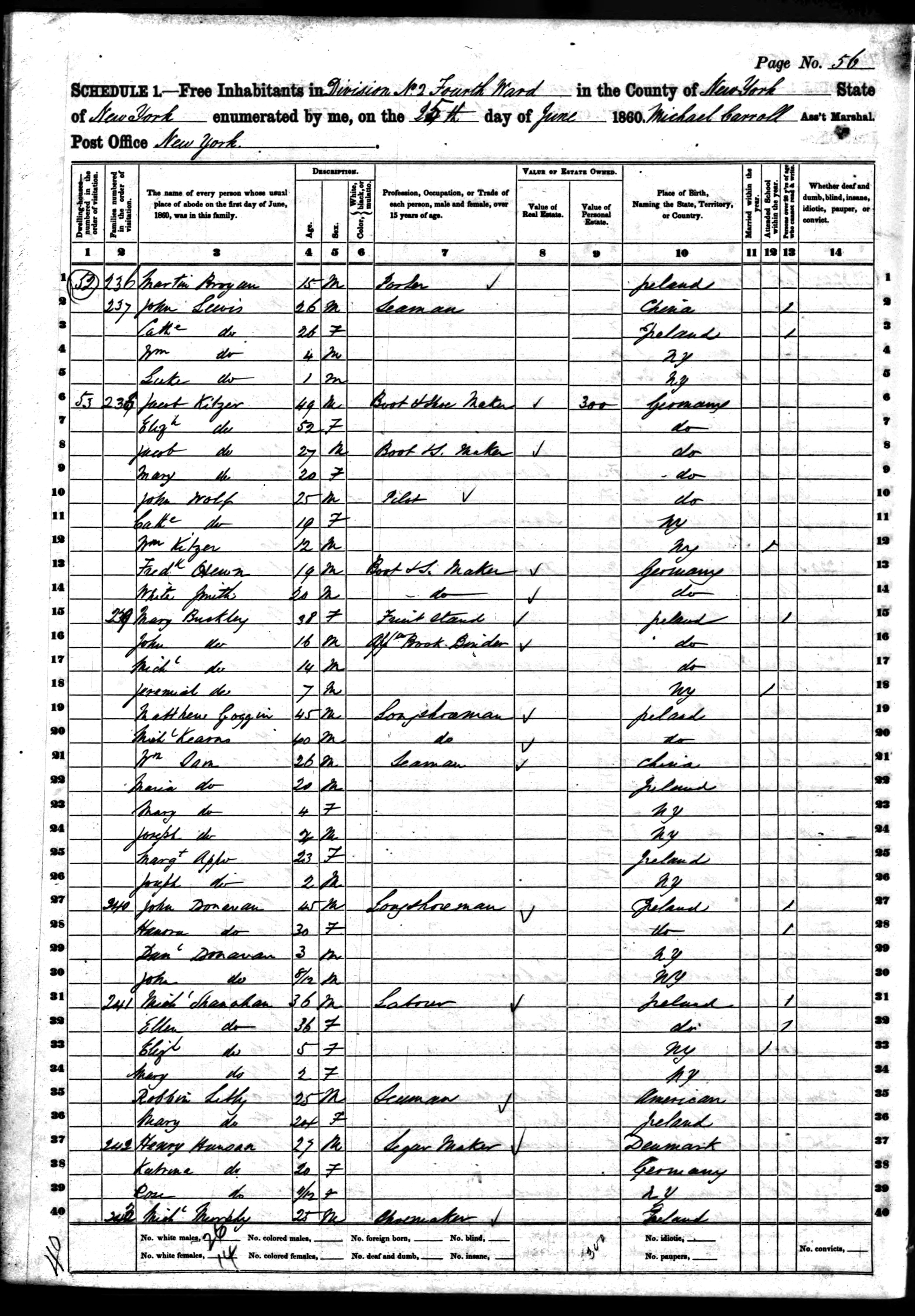 Mary and Patrick Brogan; 1860 Census (2)
