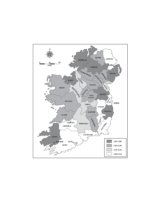 Median Peak Bank Balance Achieved by Irish Famine Immigrants Arriving in North America from 1846 to 1855, By County of Birth