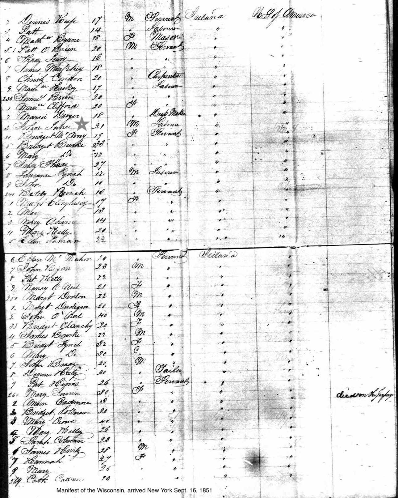 ship manifest showing John Lane's name