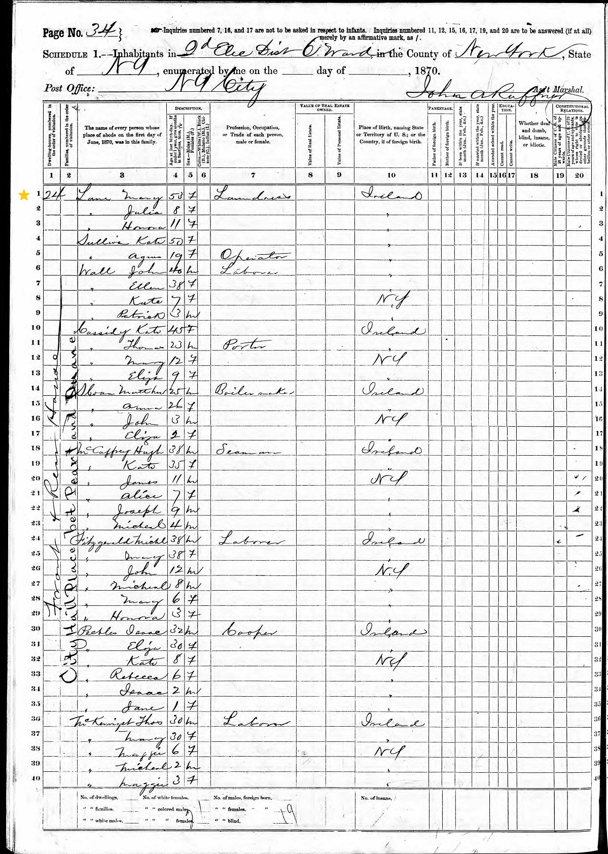 Mary Sullivan Lane listed on 1870 census