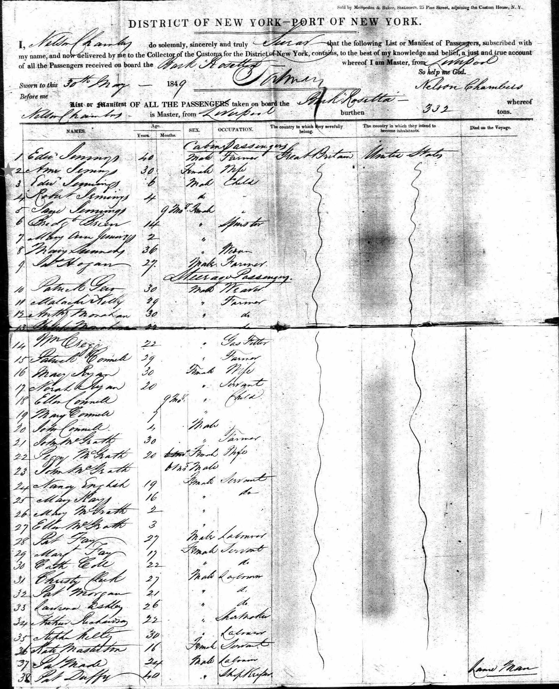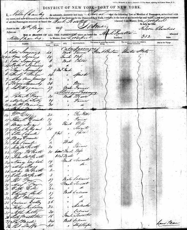 ship manifest listed on ship manifest