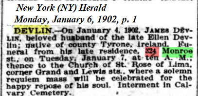 James Devlin Death Notice, 1902, in New York Herald