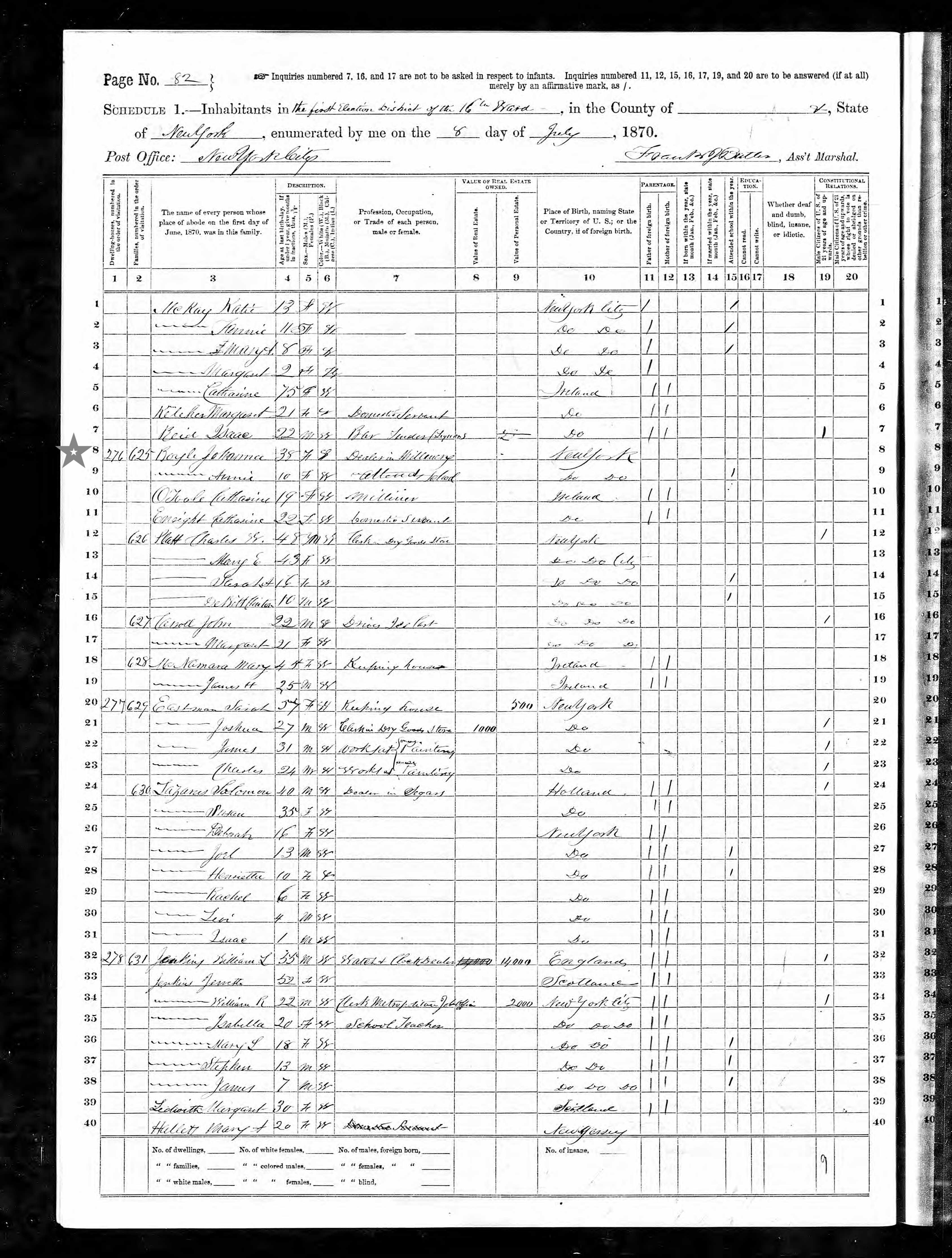 Joanna Boyle; 1870 Census
