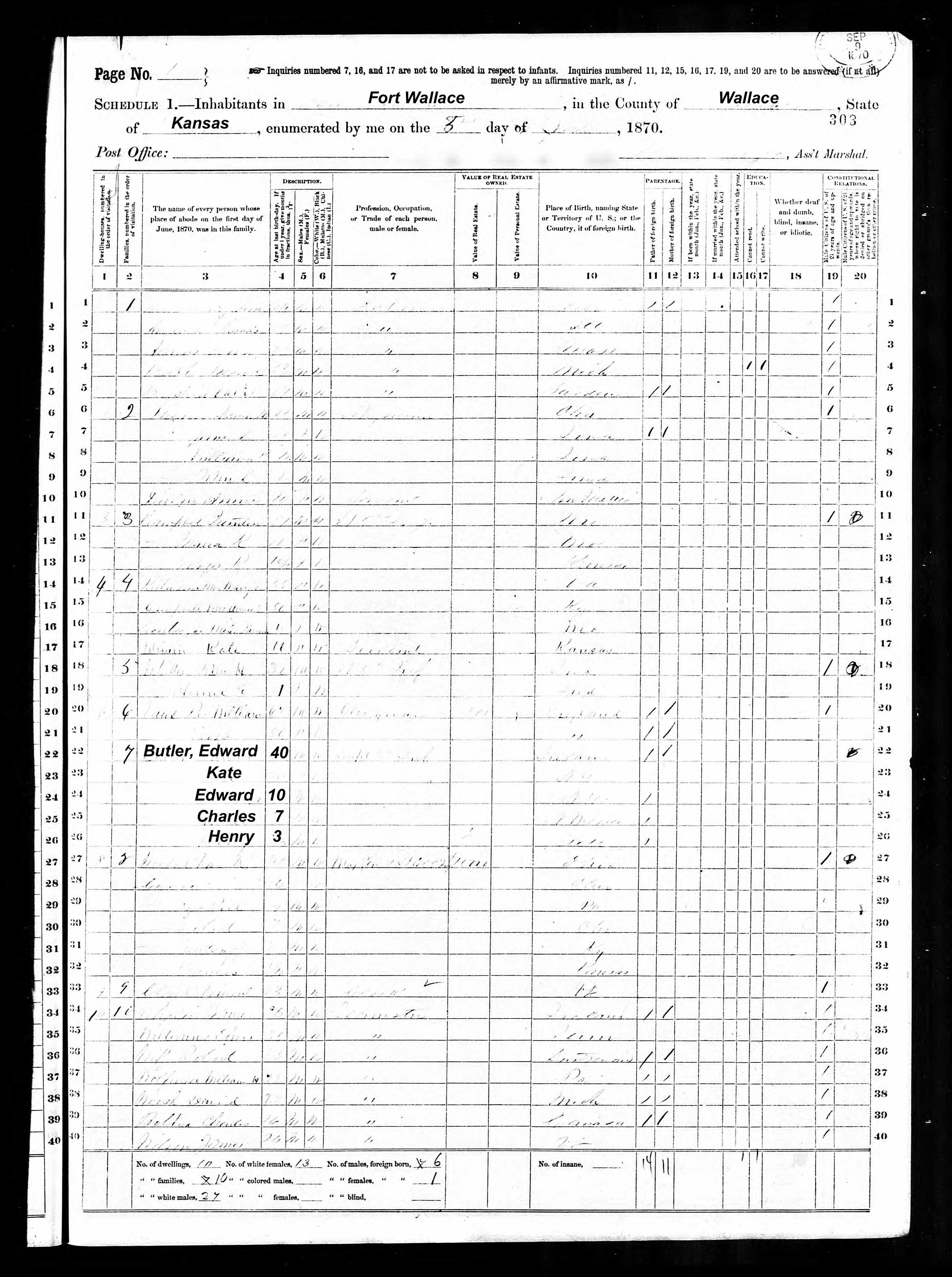 Edmond Butler; 1870 Census