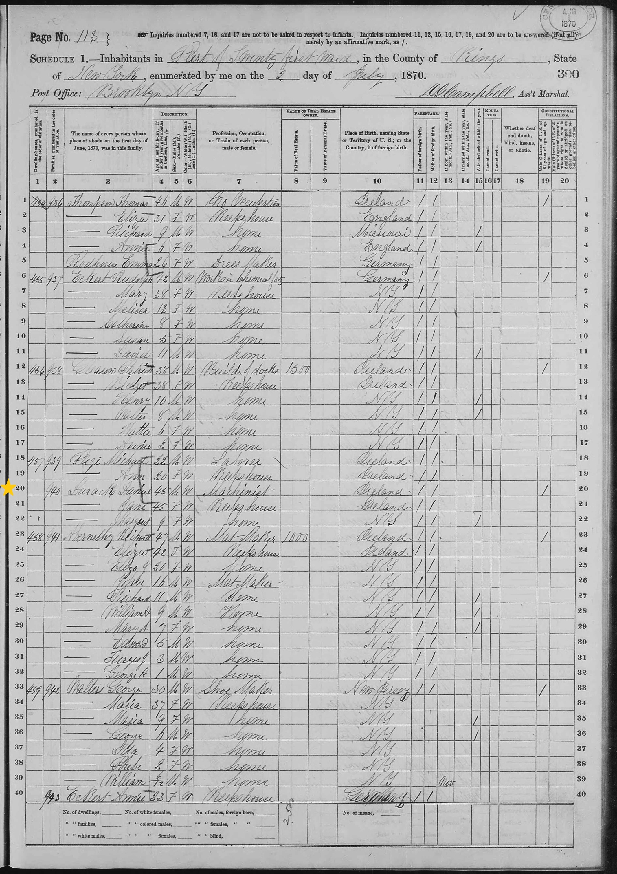Daniel Durack; 1870 Census