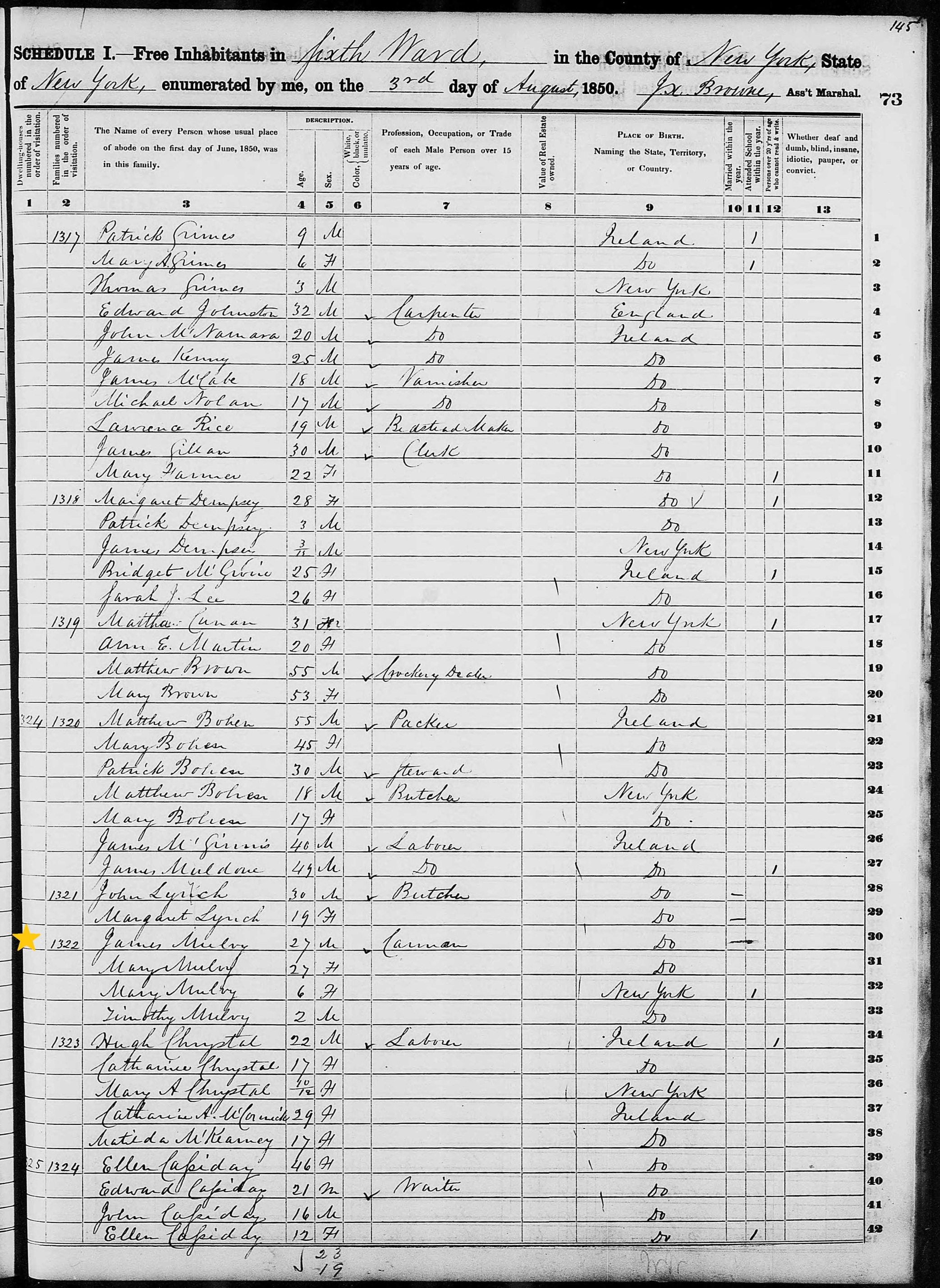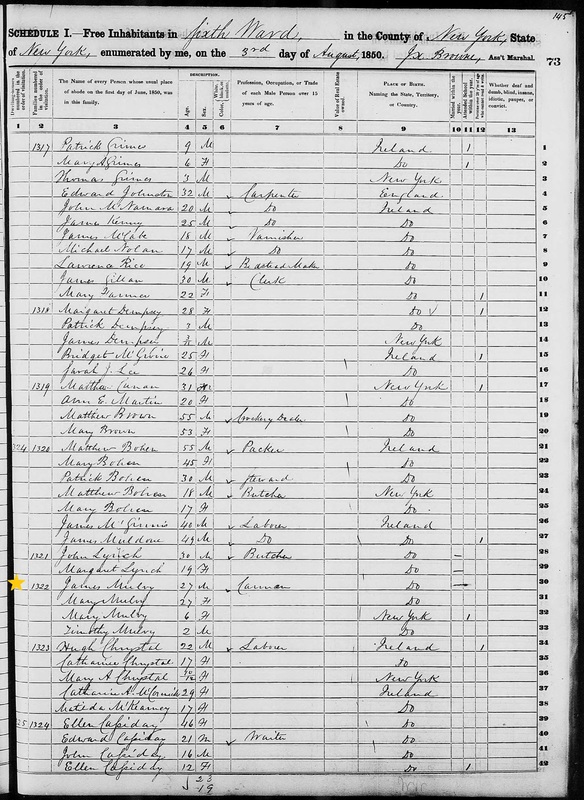 James Mulry; 1850 Census