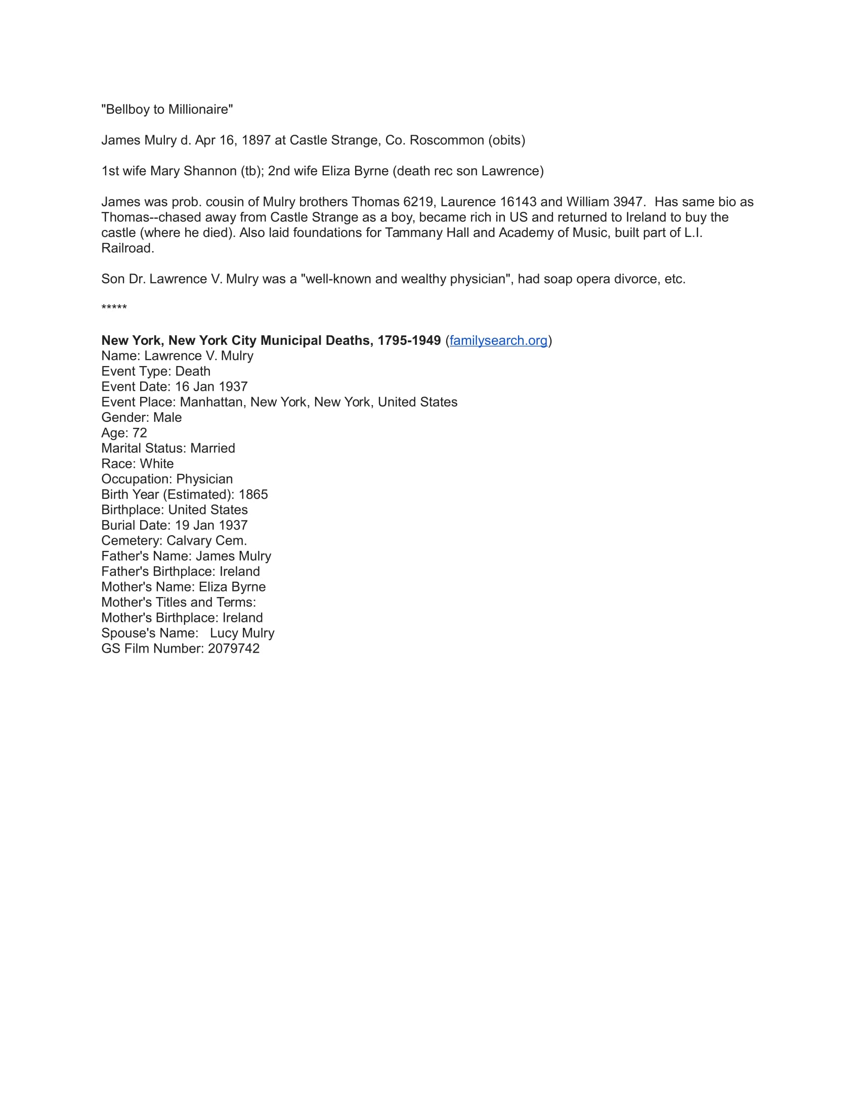 James Mulry Additional Information
