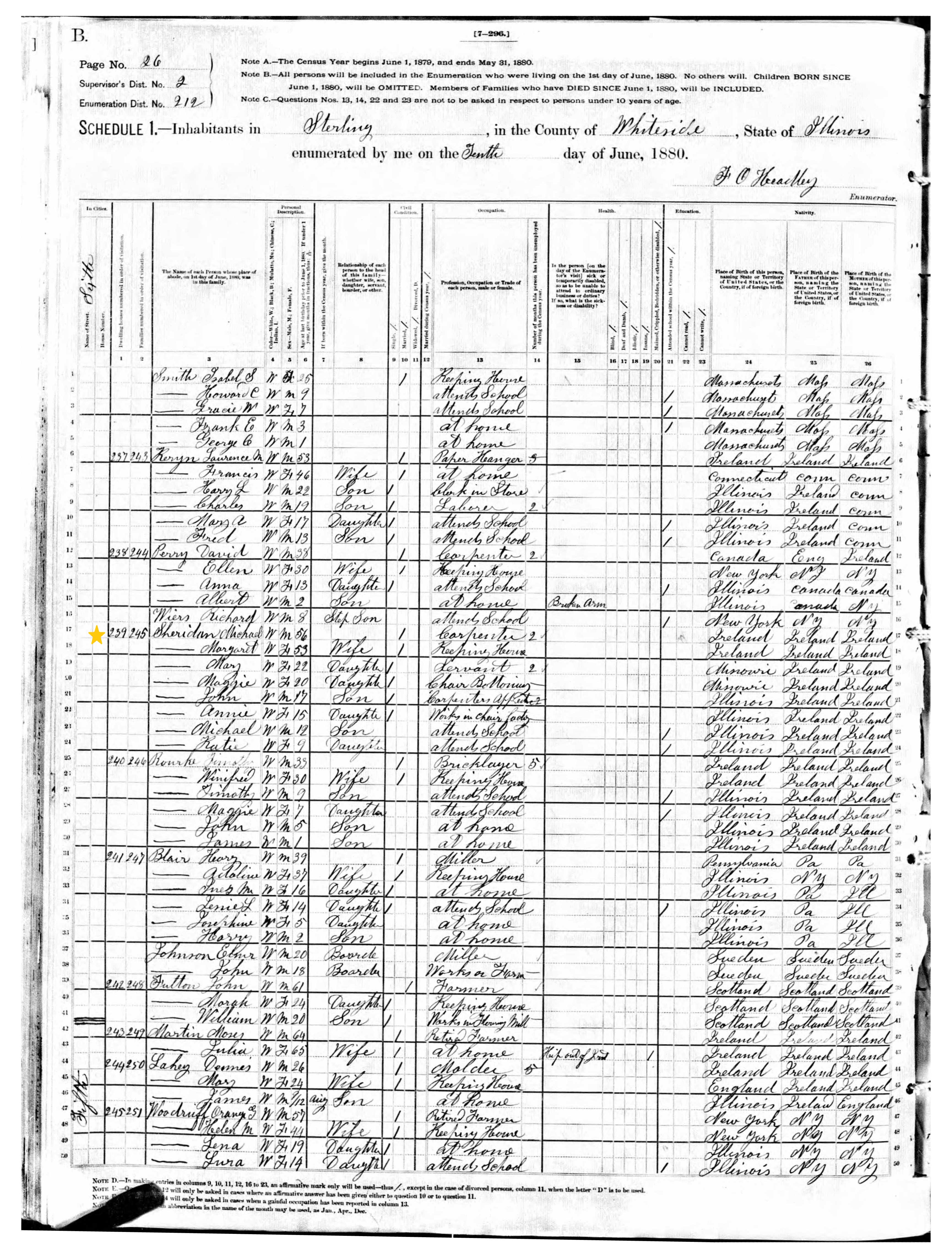 Margaret and Michael Sheridan; 1880 Census