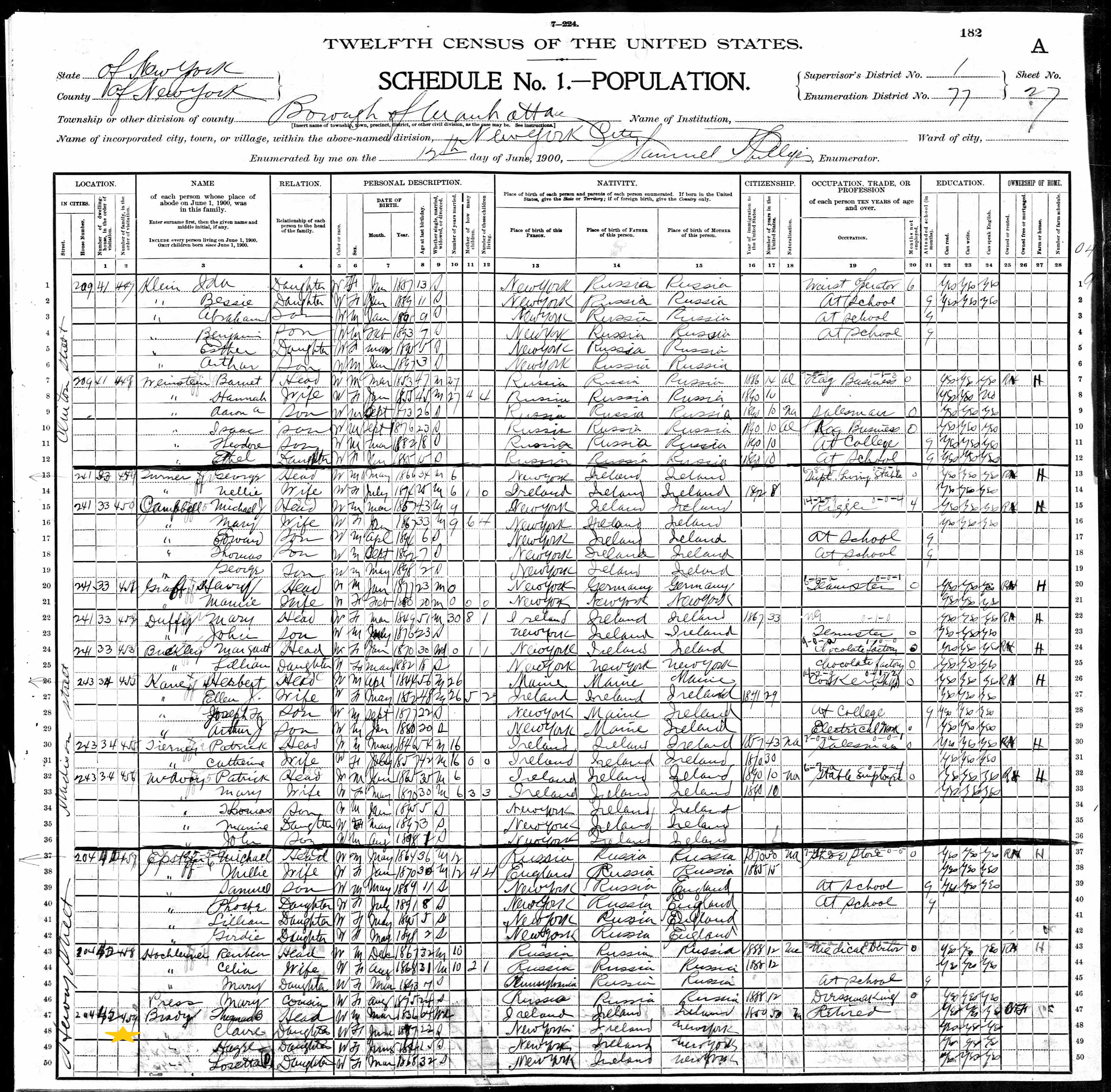 Thomas B. Brady; 1900 Census
