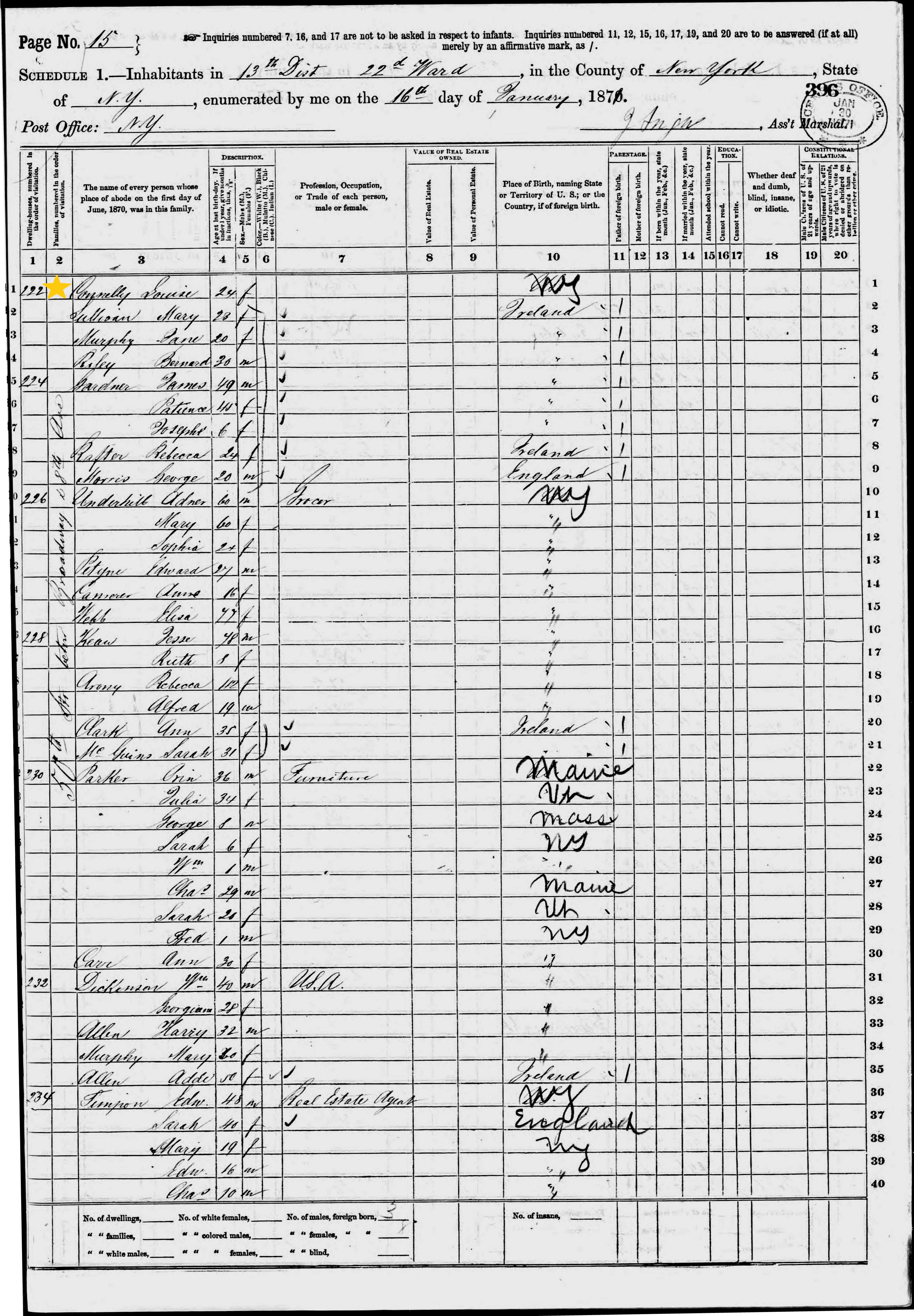 Michael Connolly; 1870 Census (2)