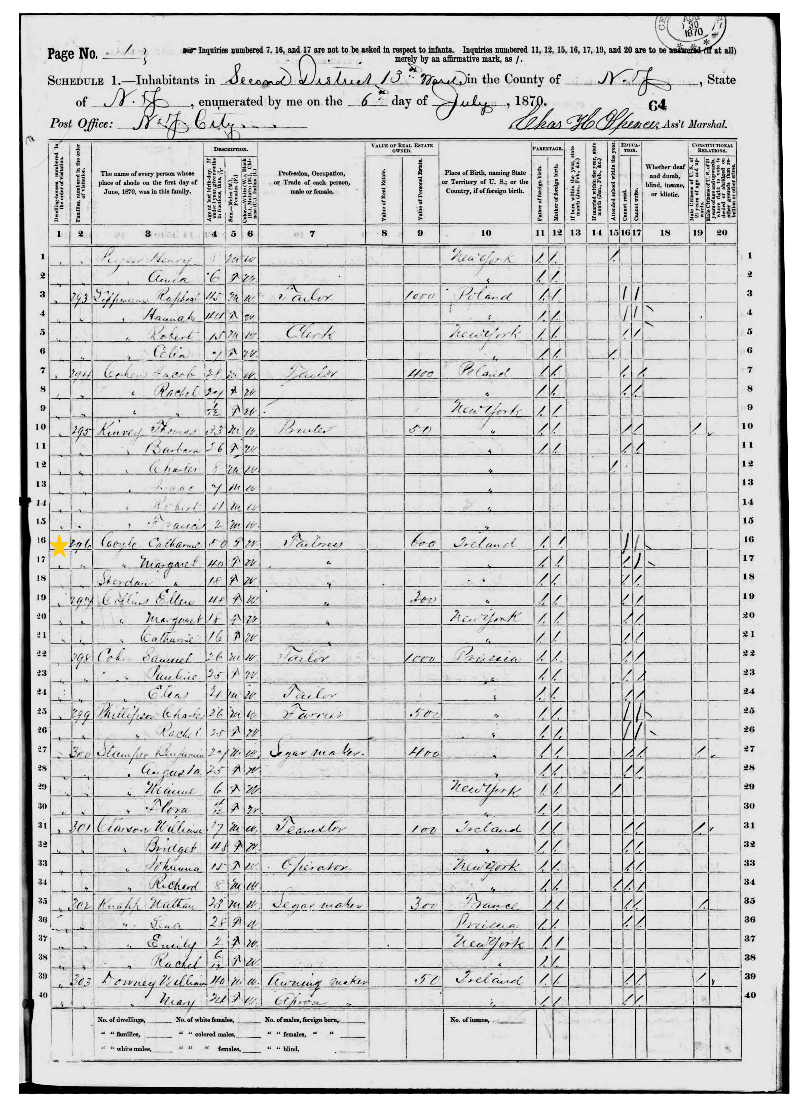 Catherine and Margaret Coyle; 1870 Census