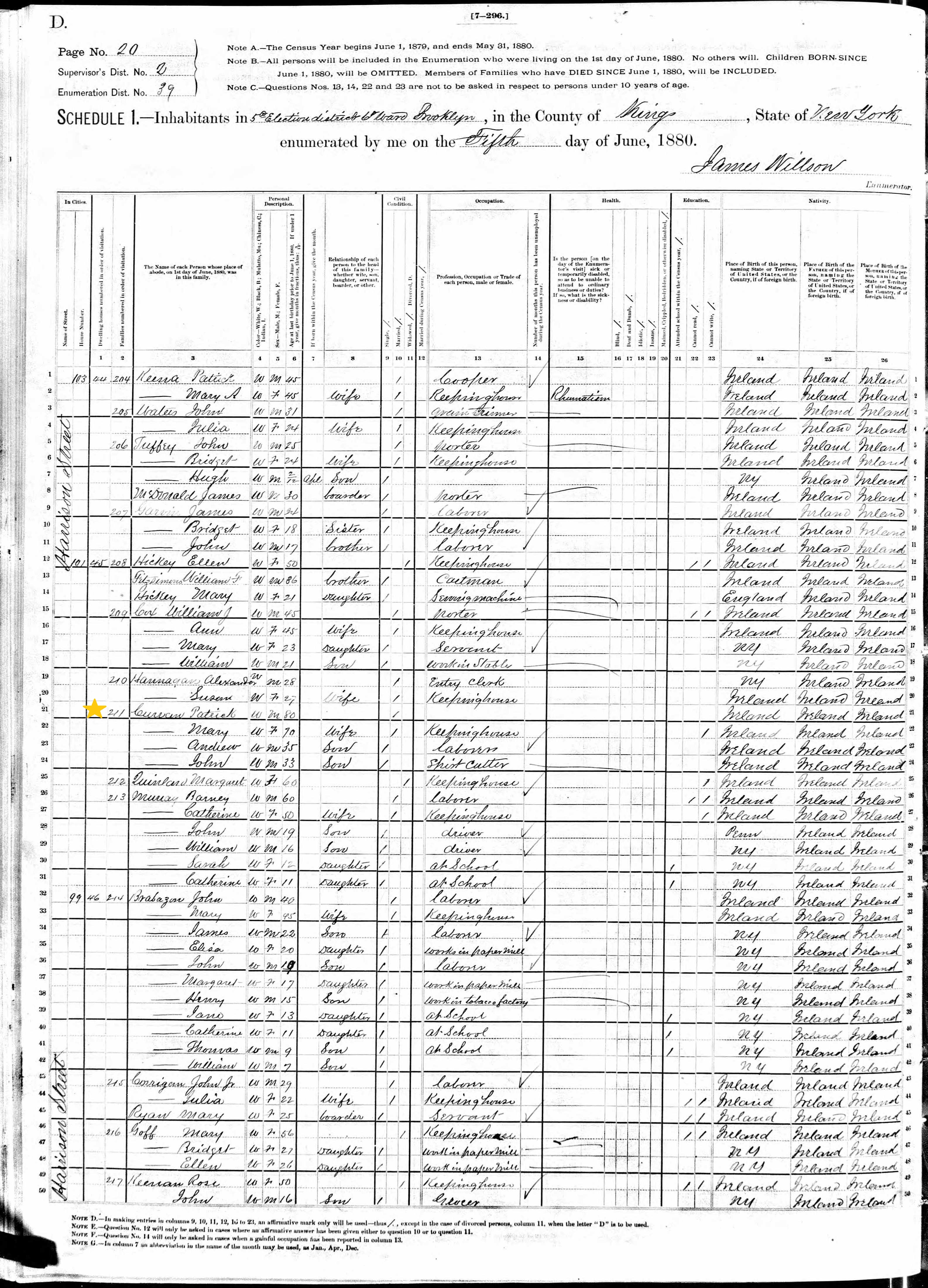 Patrick Cullen; 1880 Census