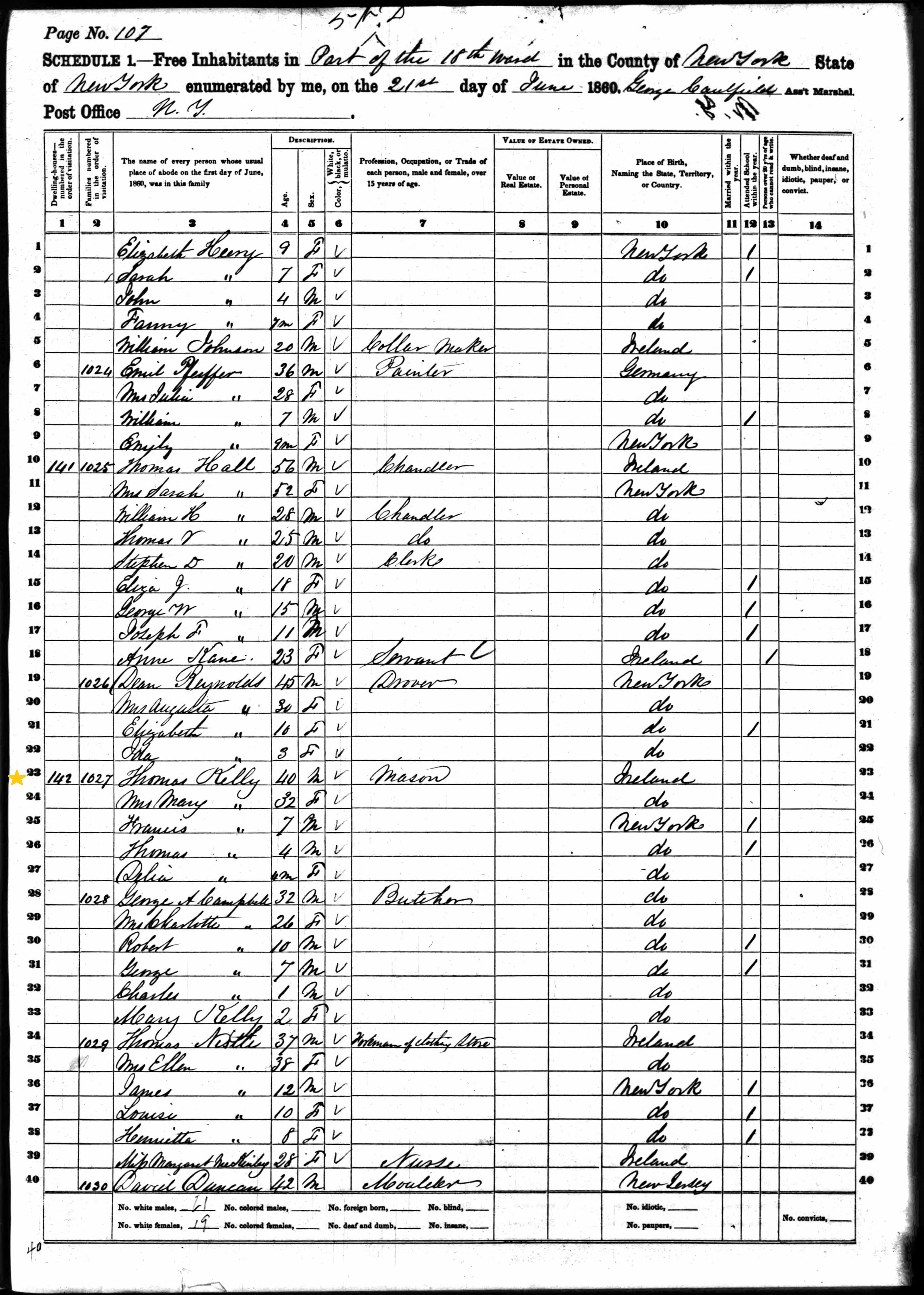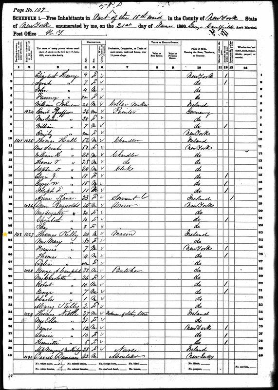 Thomas and Mary Kelly; 1860 Census