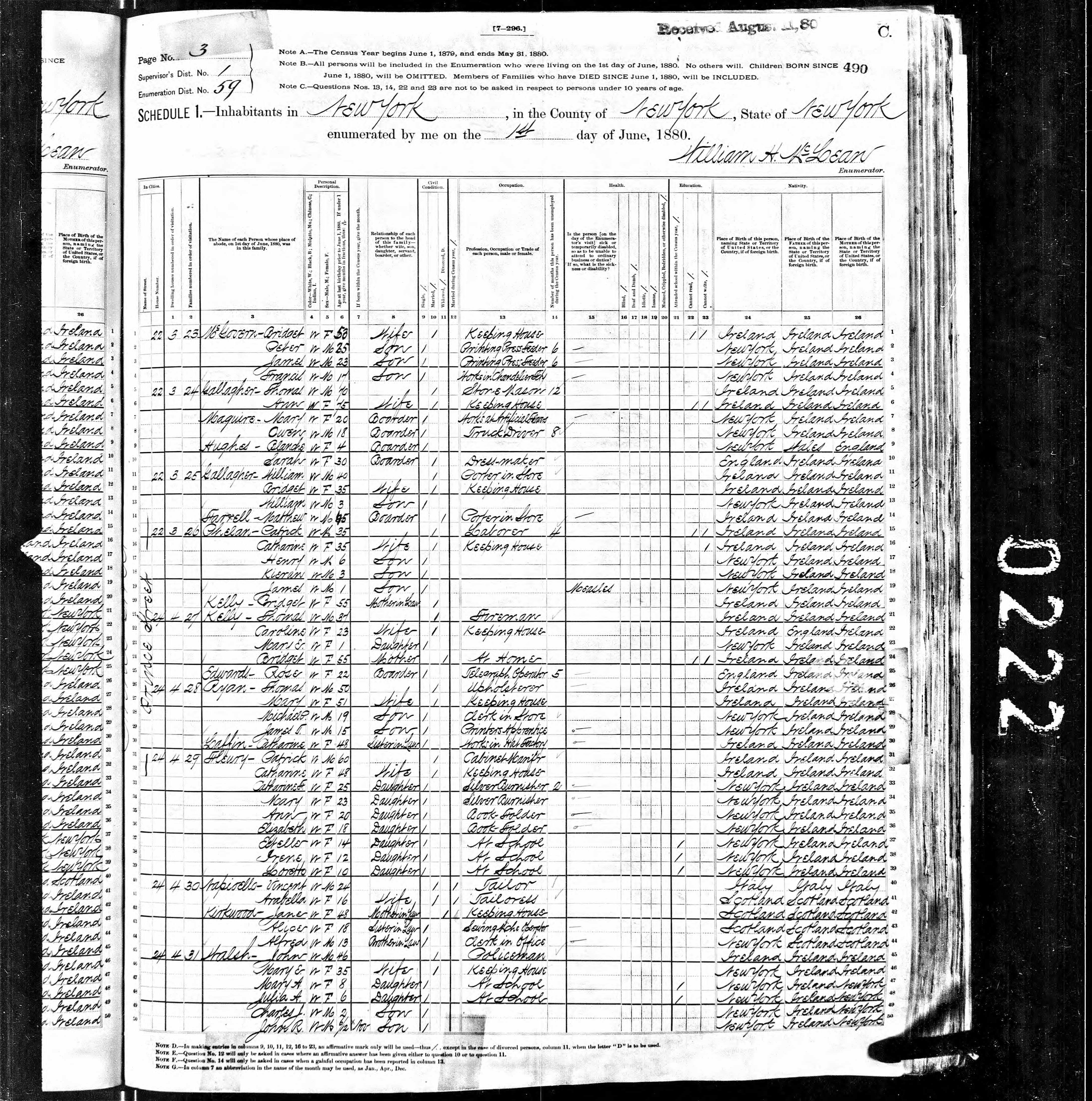 James McGovern; 1880 Census (2)