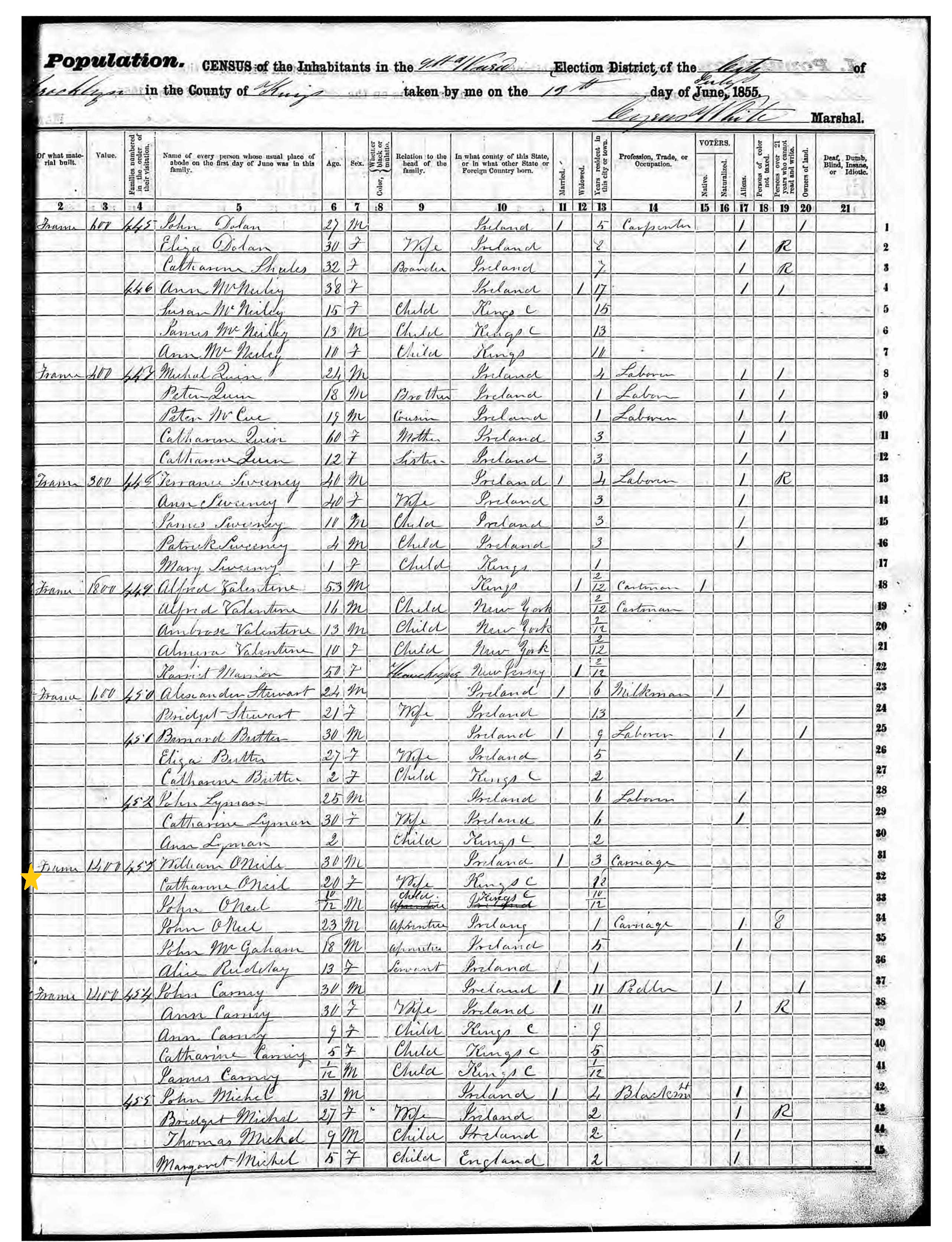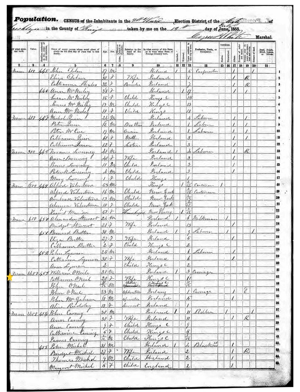 William O'Neill; 1855 Census