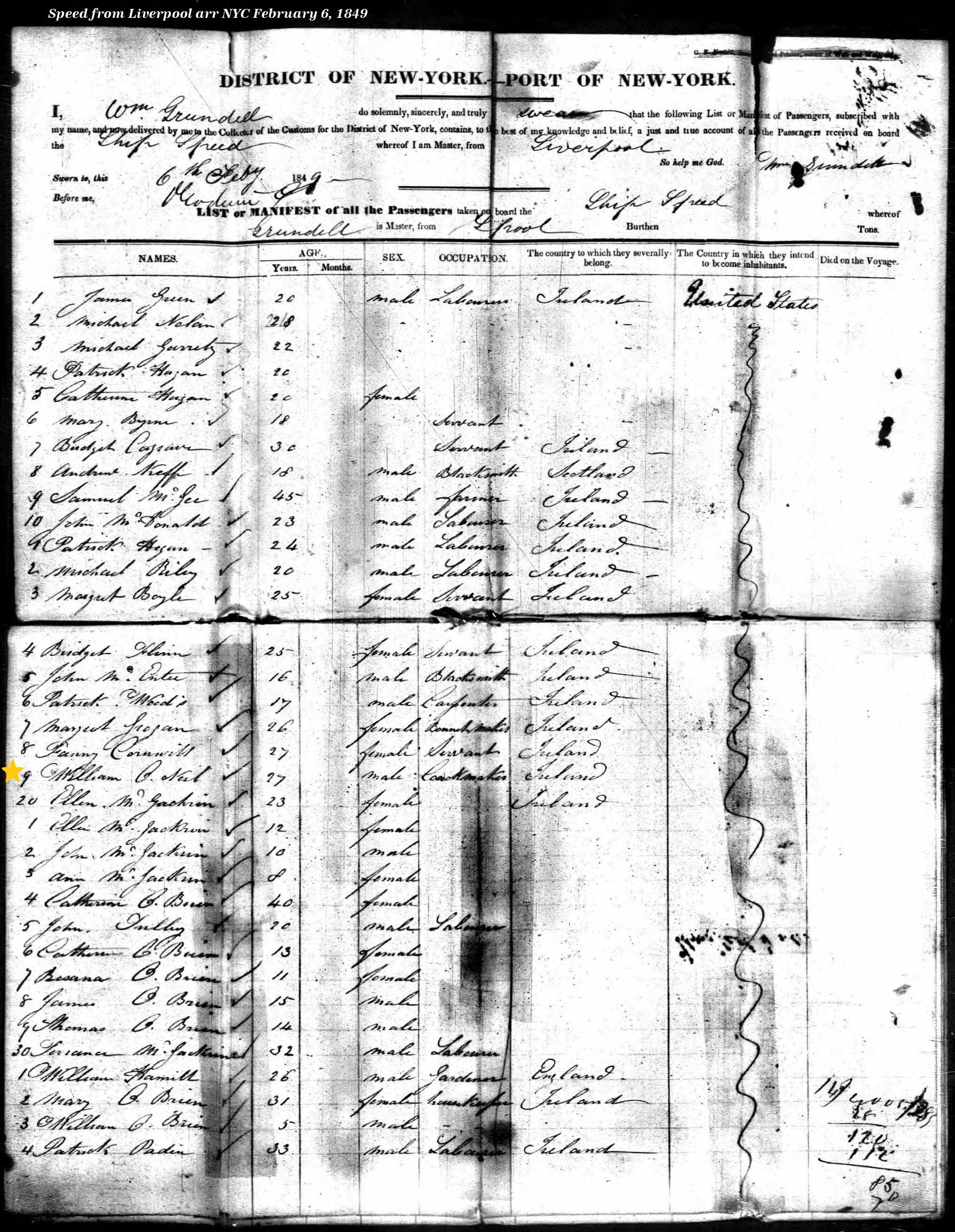 William O'Neill Ship Manifest