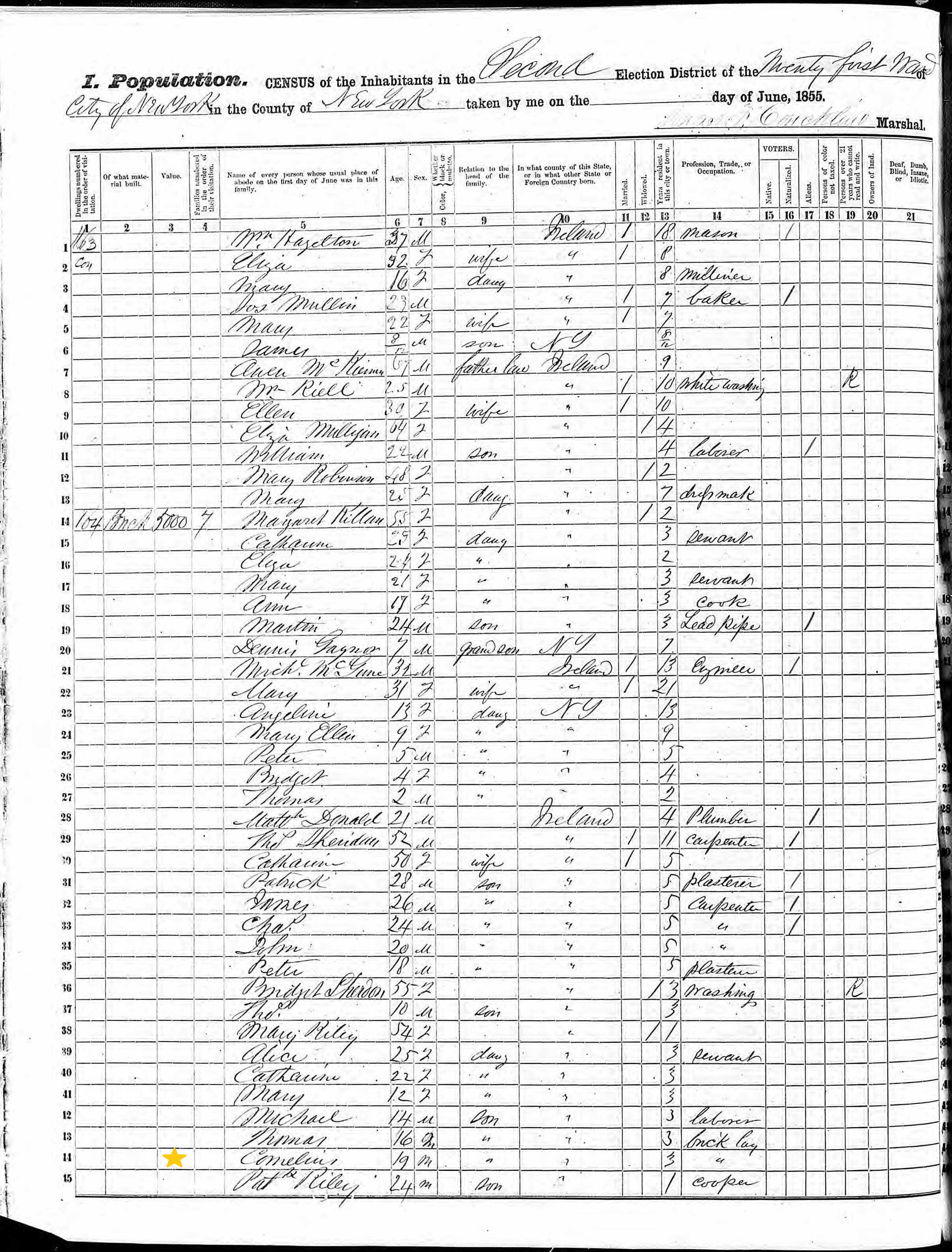 Patrick O'Reilly; 1855 Census