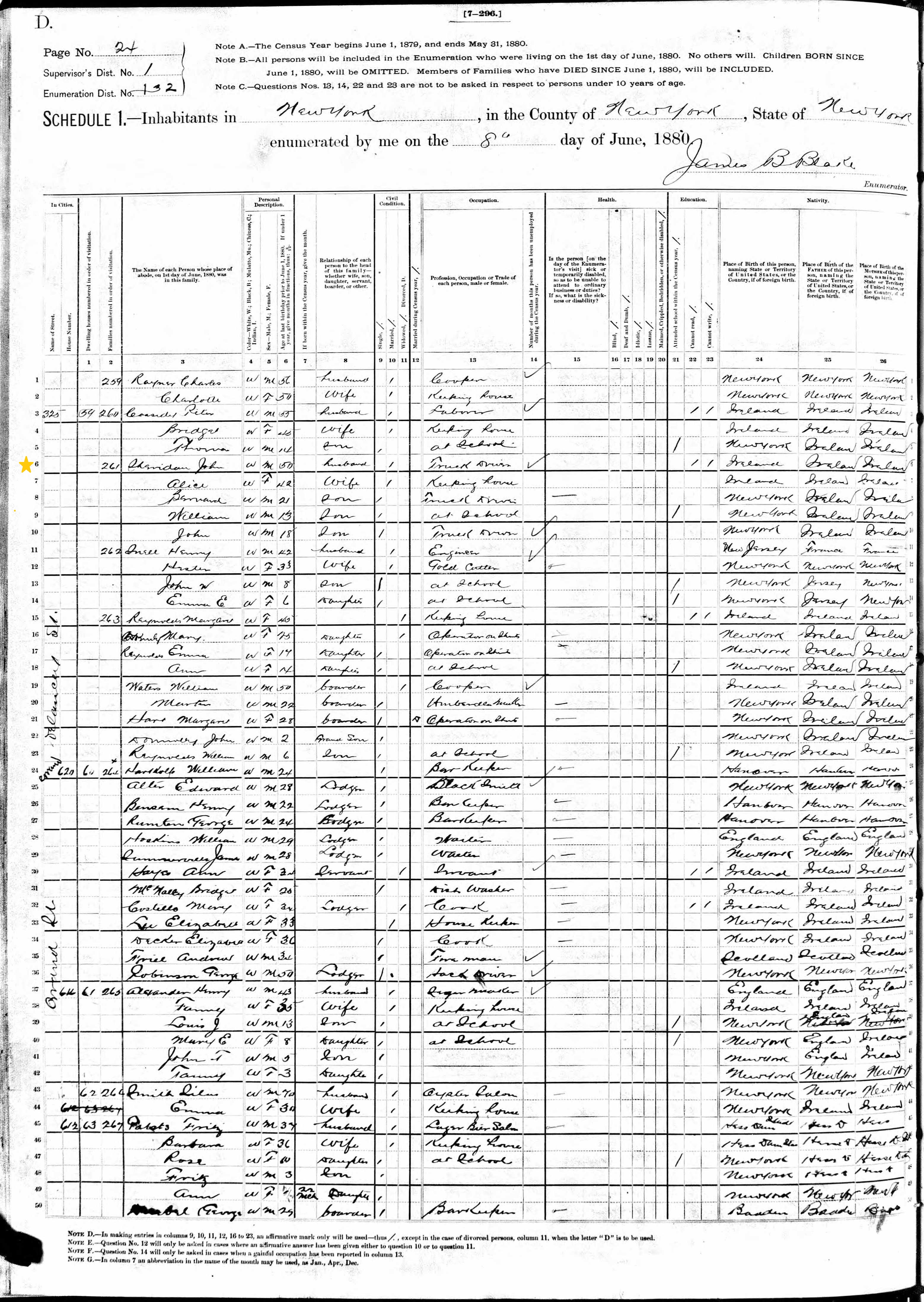 John Sheridan; 1880 Census