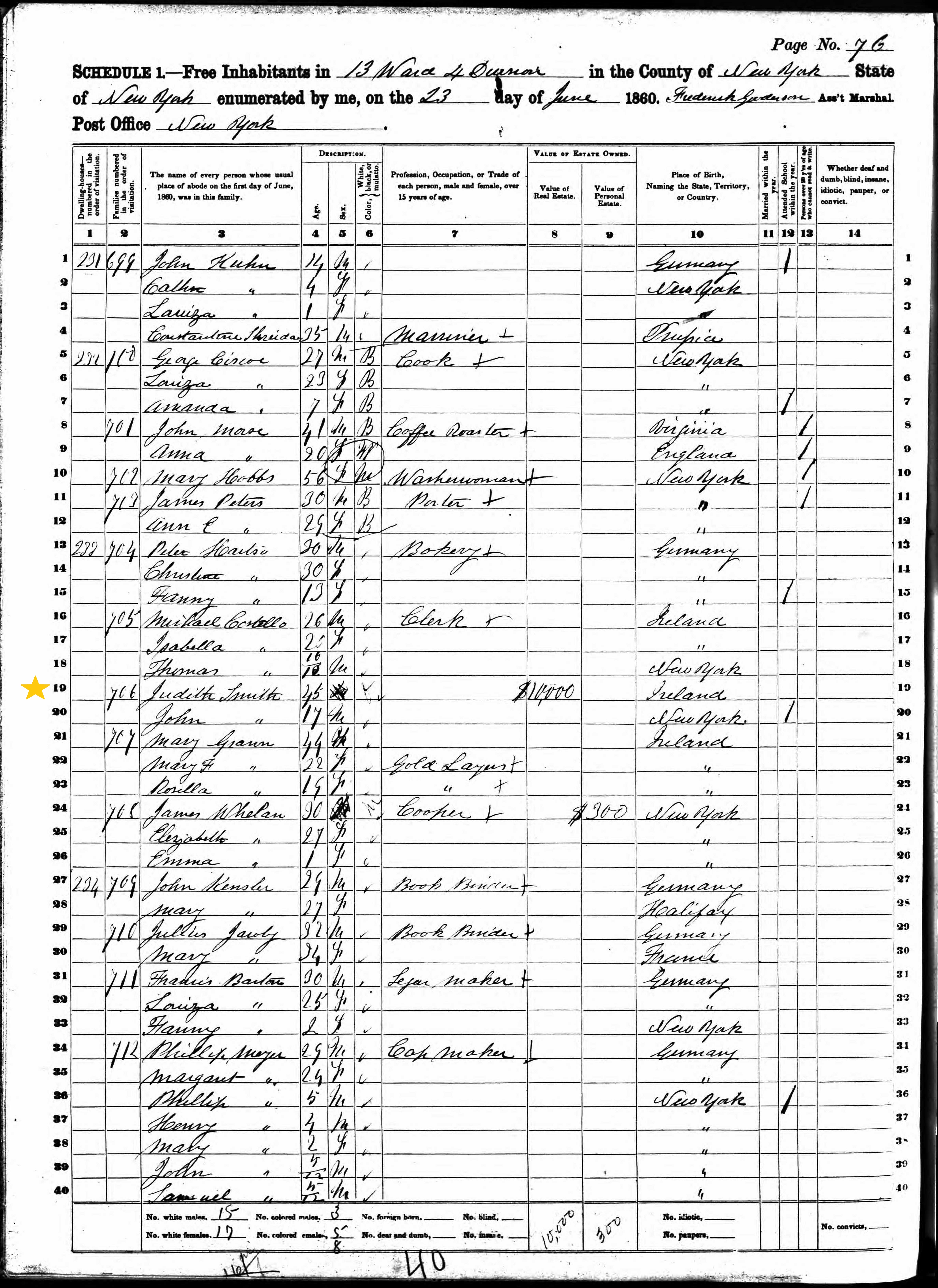 Judith Smith; 1860 Census