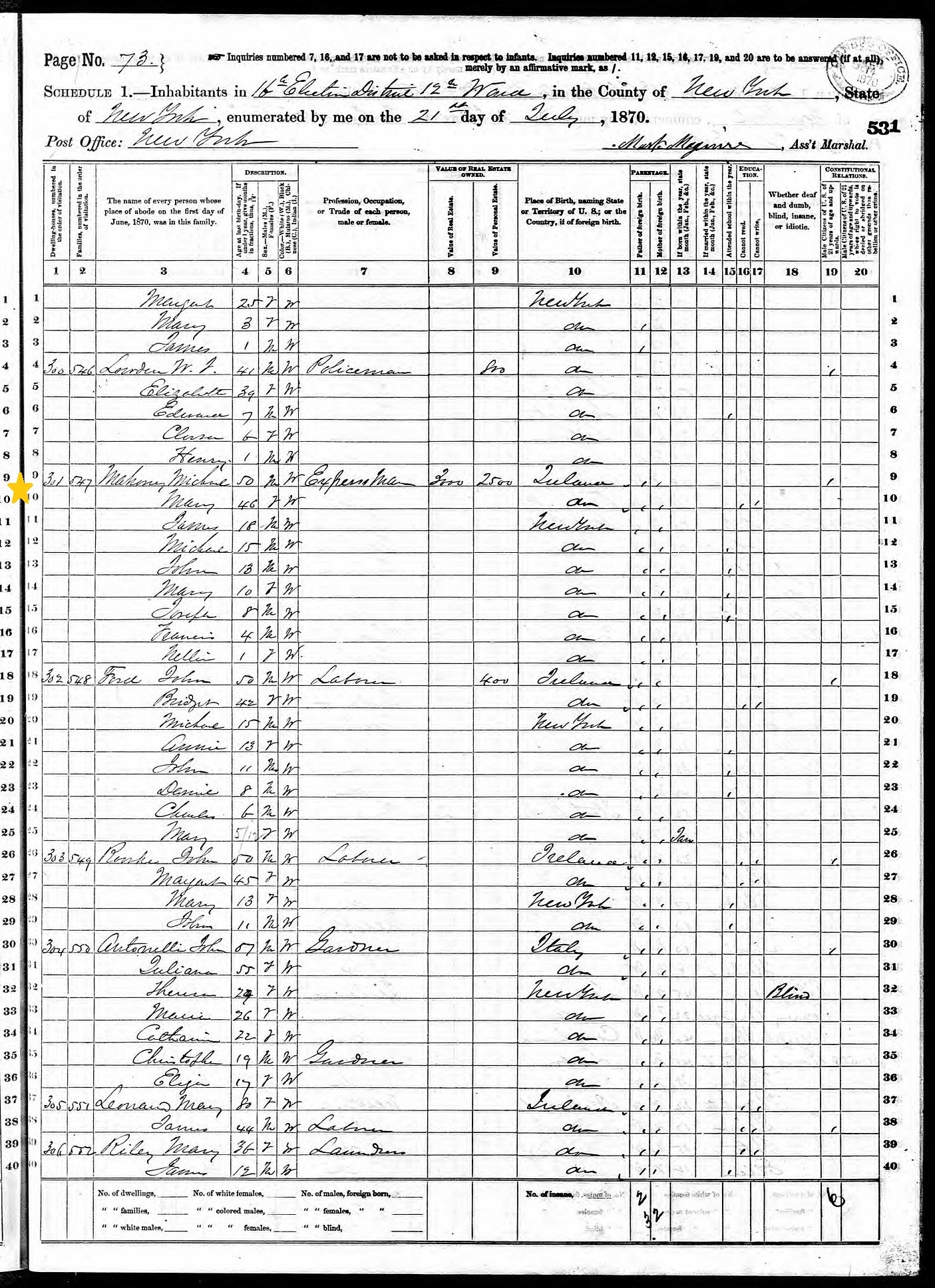 Mary and Michael Mahoney; 1870 Census