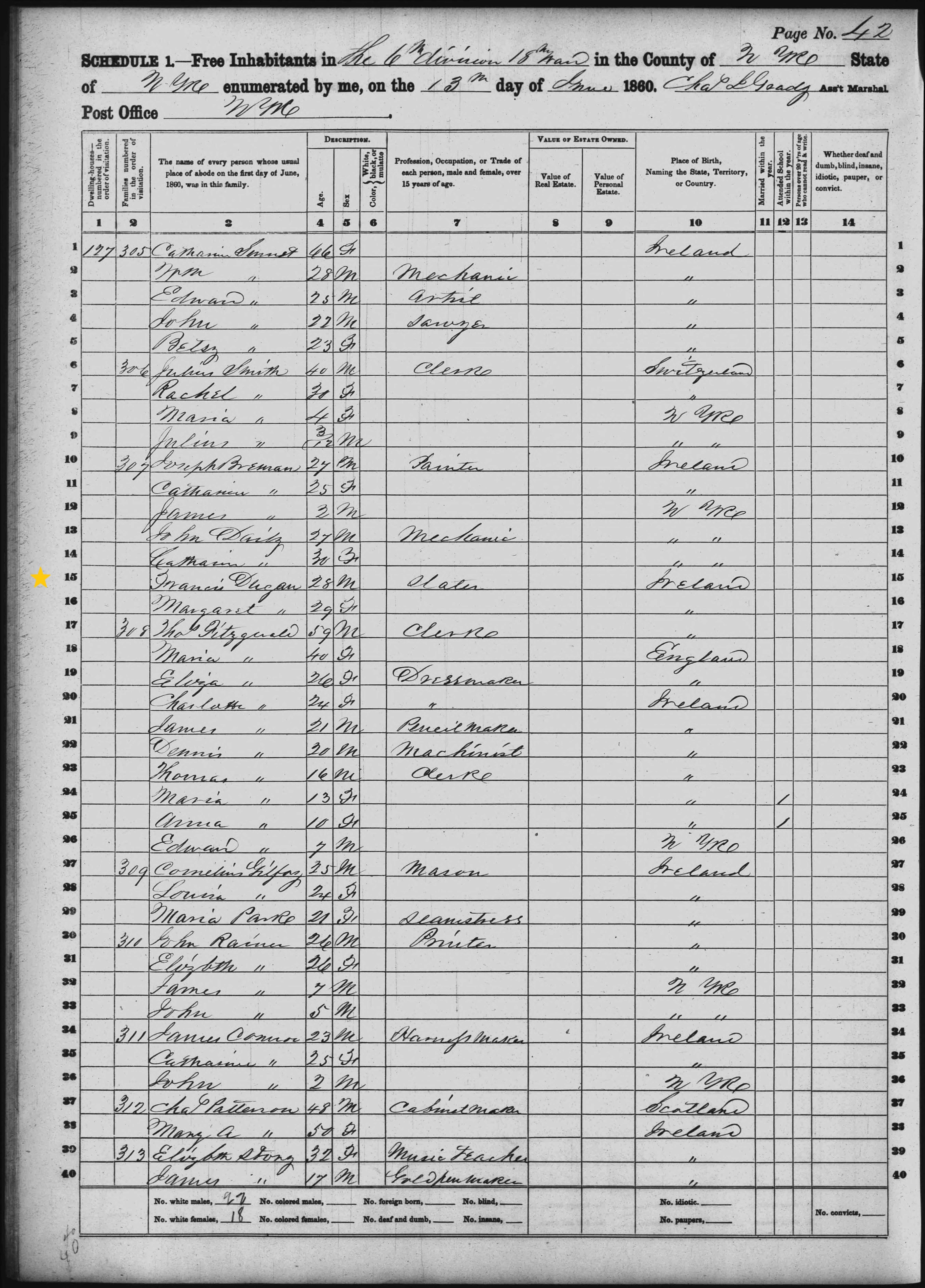 Francis Dugan; 1860 Census