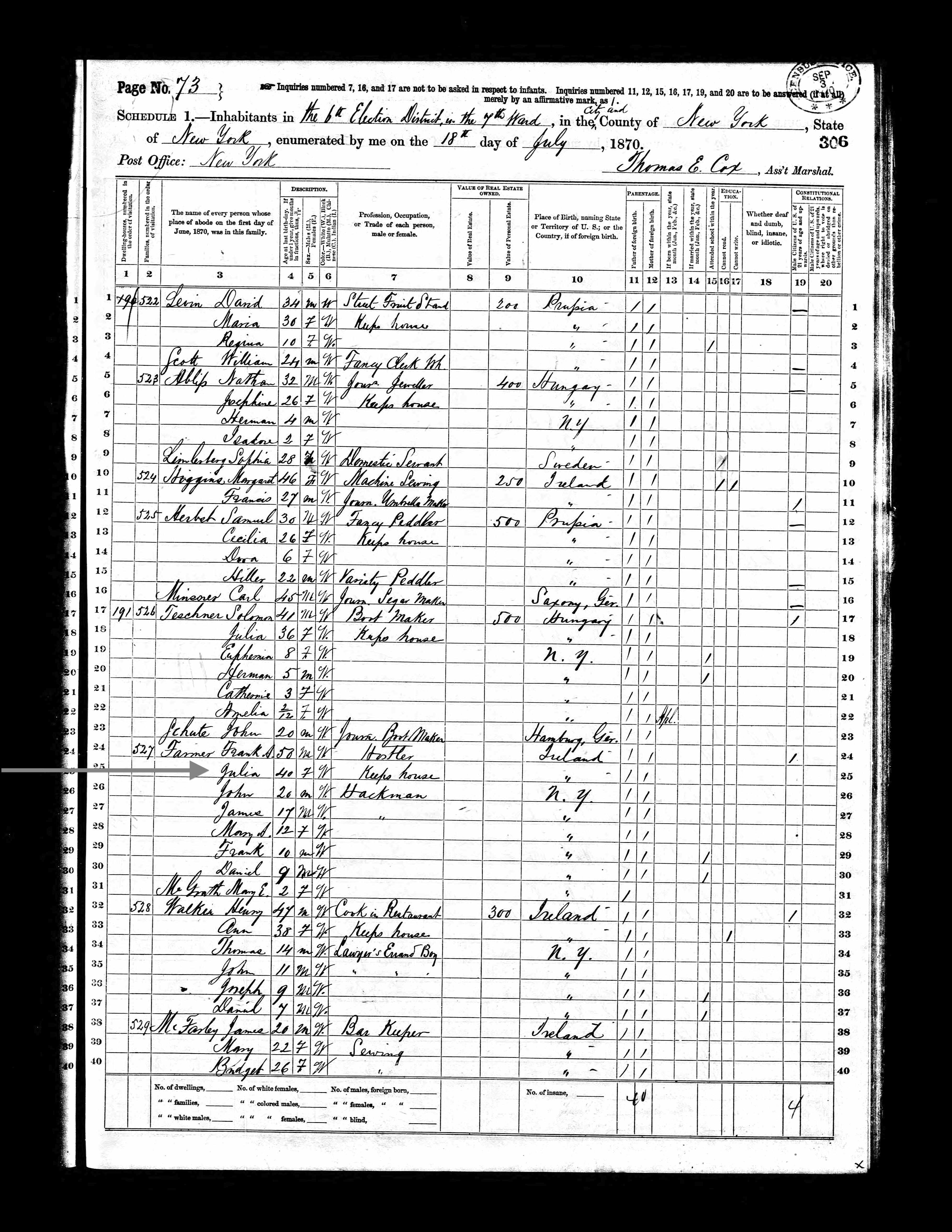 Julia Farmer; 1870 Census