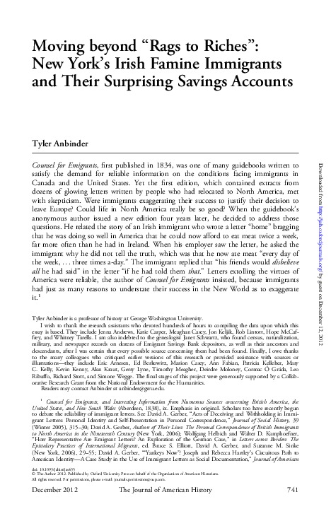 Moving Beyond the Rags to Riches: Myth of Irish Immigrants