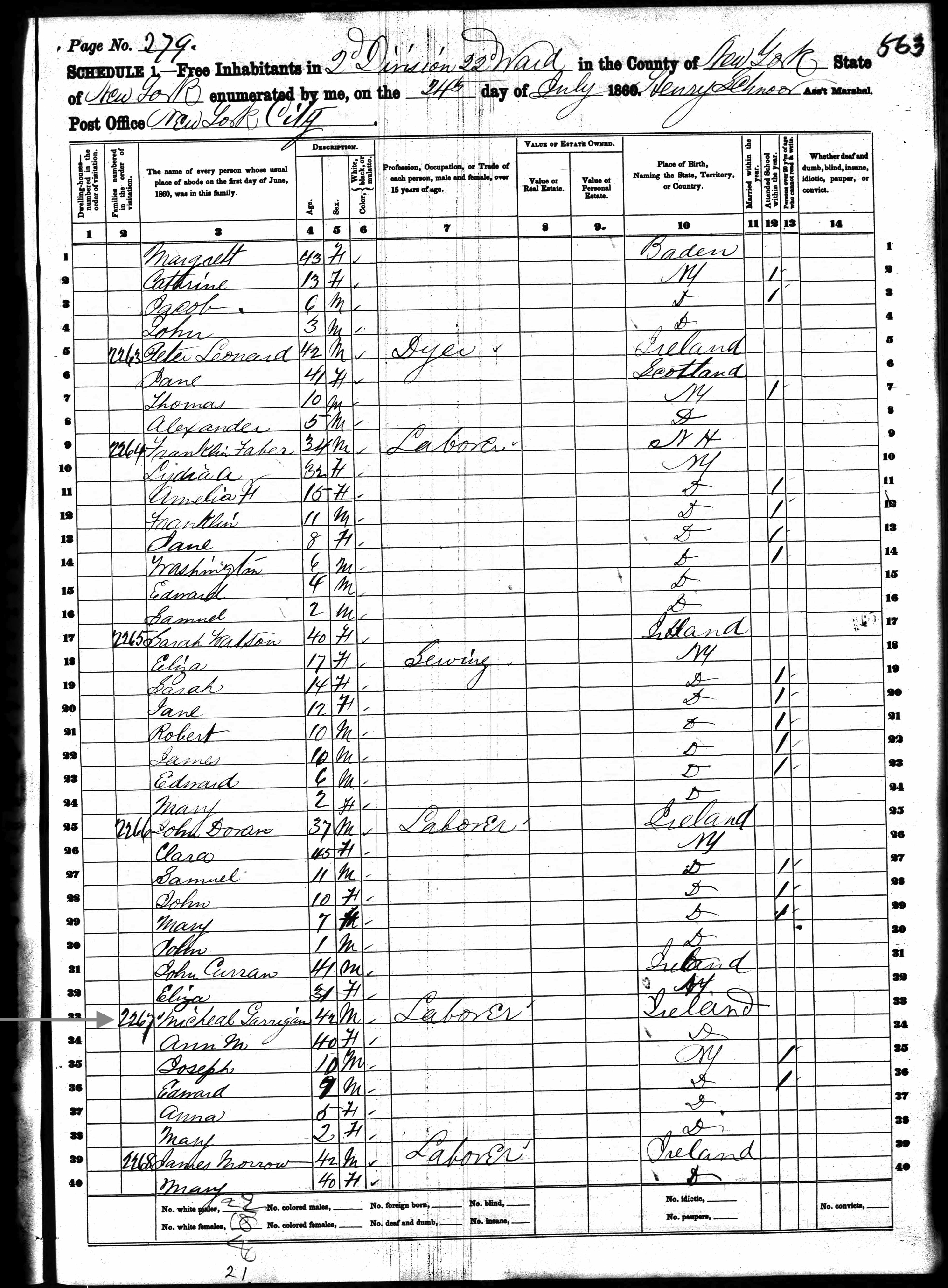 Michael Garragan; 1860 Census