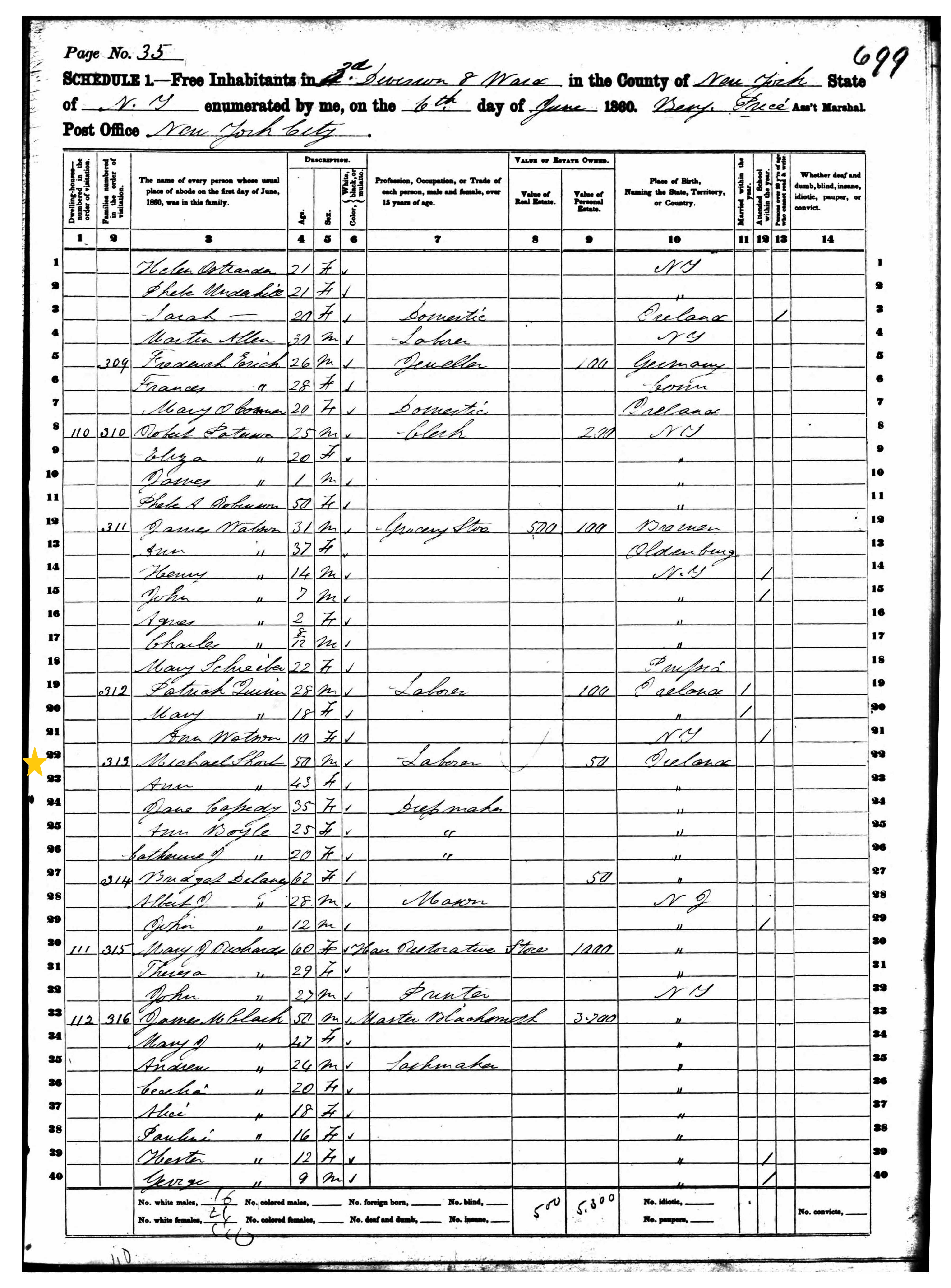 Michael and Ann Short; 1860 Census