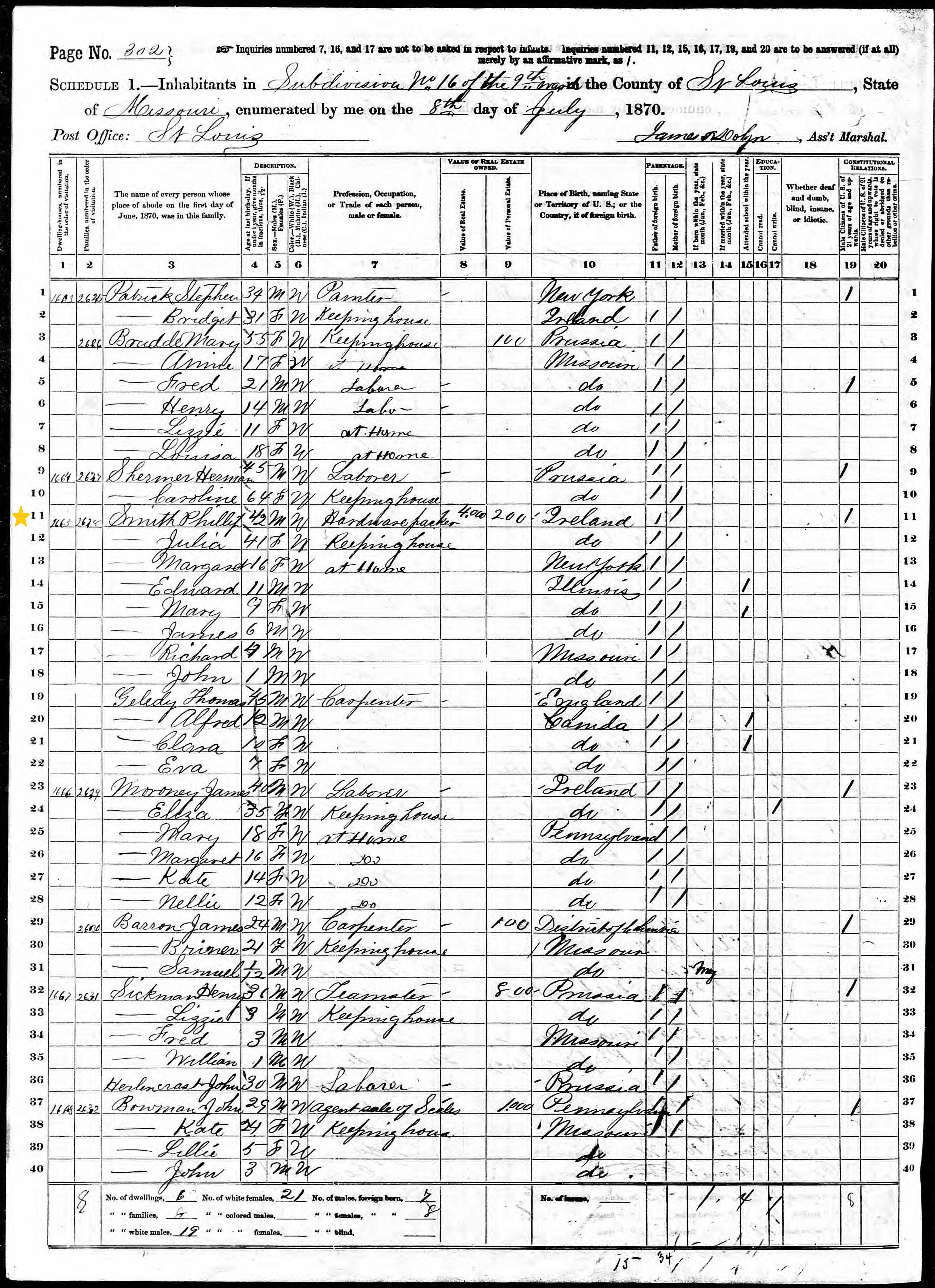 Philip Smith; 1870 Census