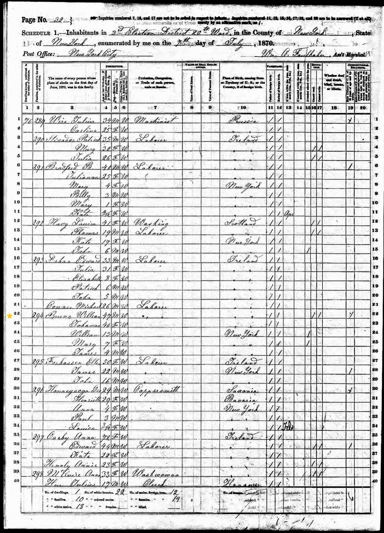 William and Johanna Byrnes; 1870 Census