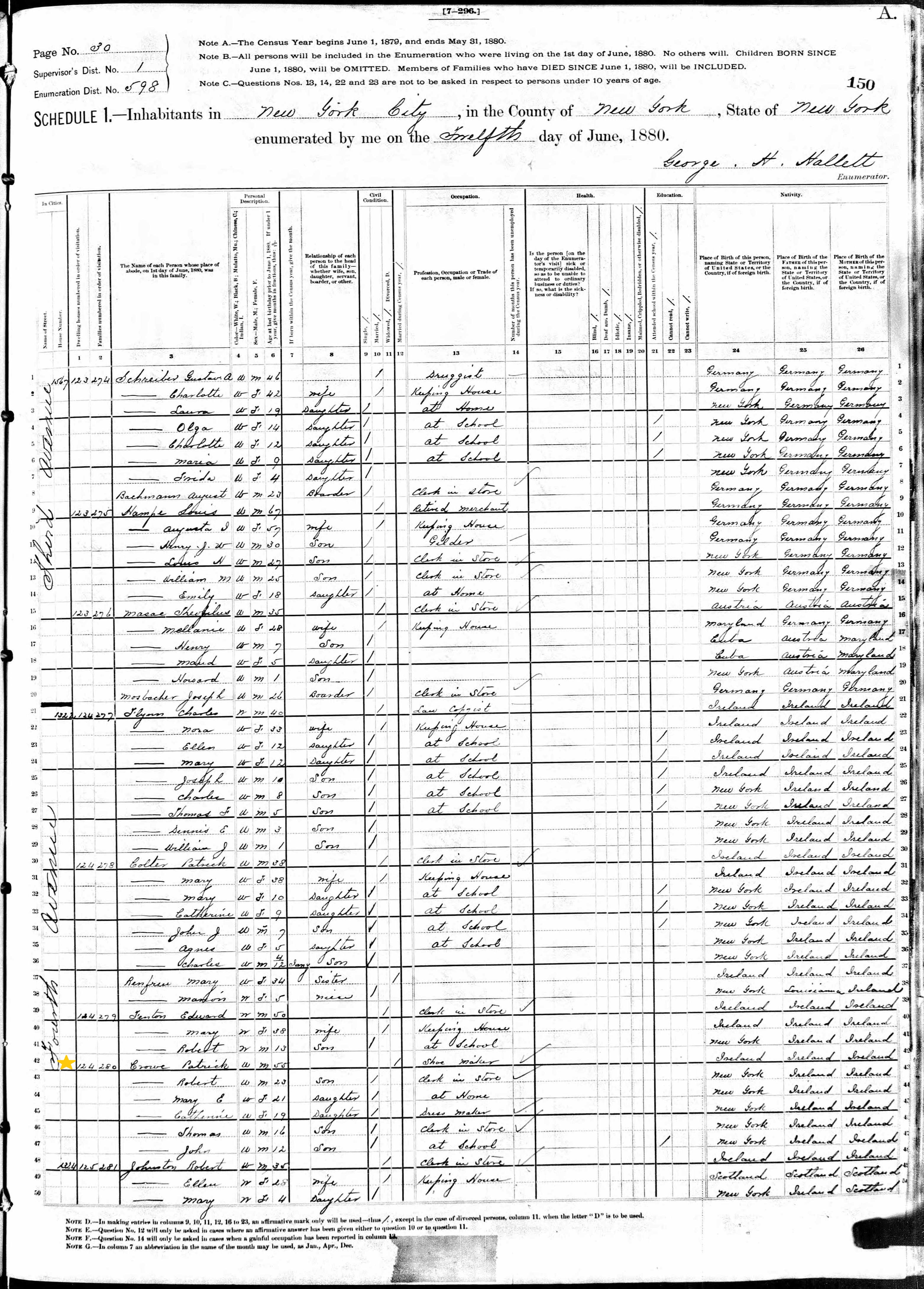 Patrick Crowe; 1880 Census