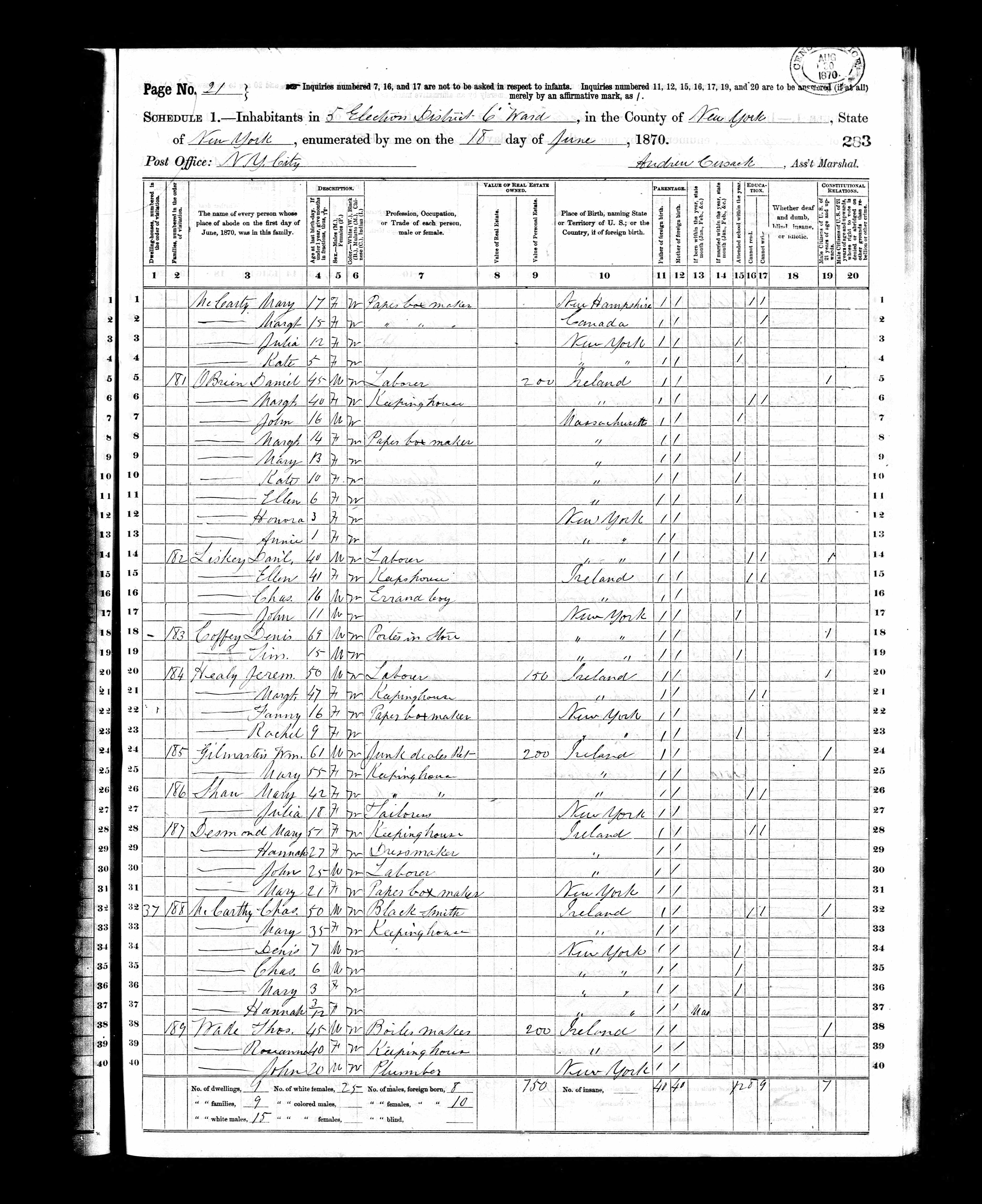 William Gilmartin; 1870 Census