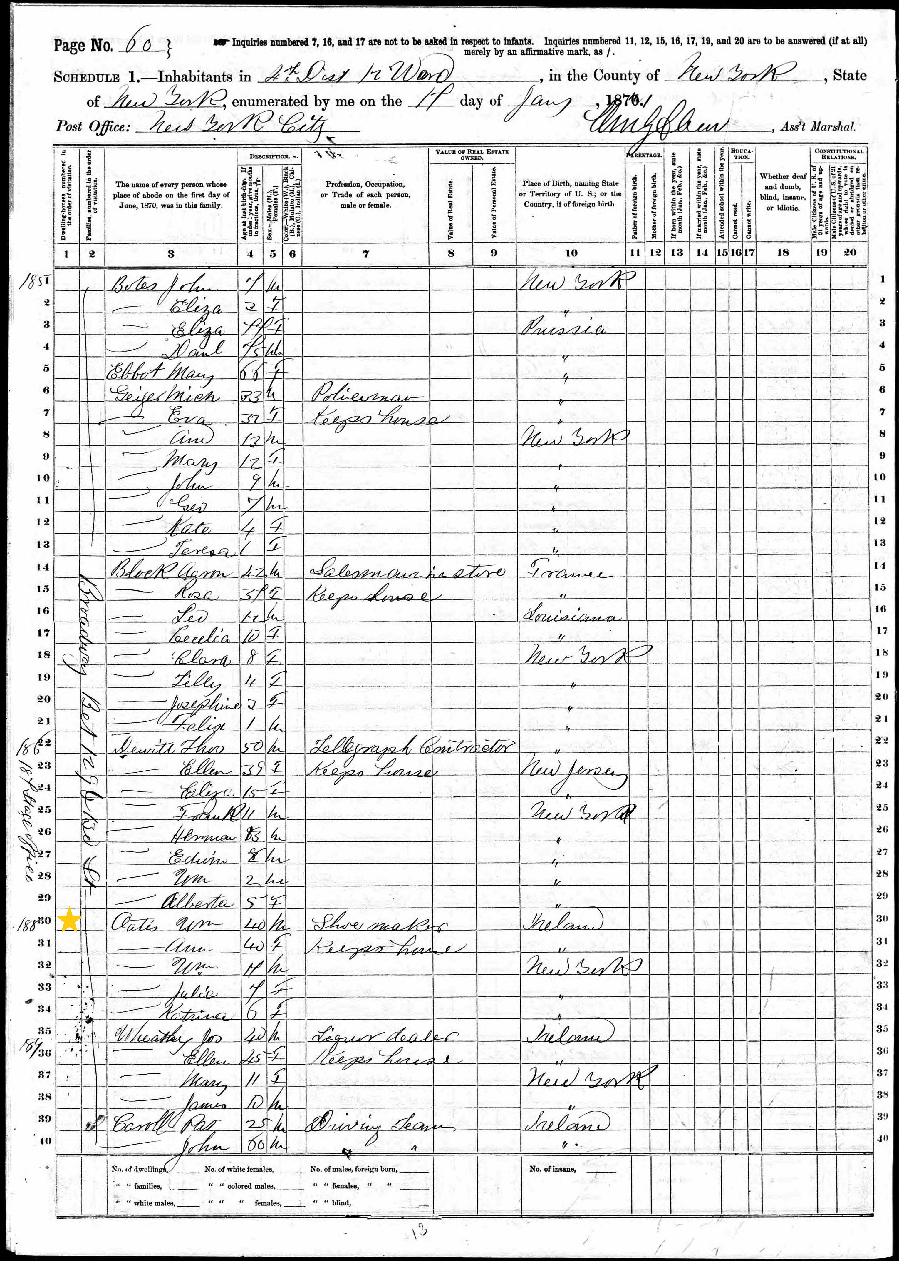 William Oates; 1870 Census