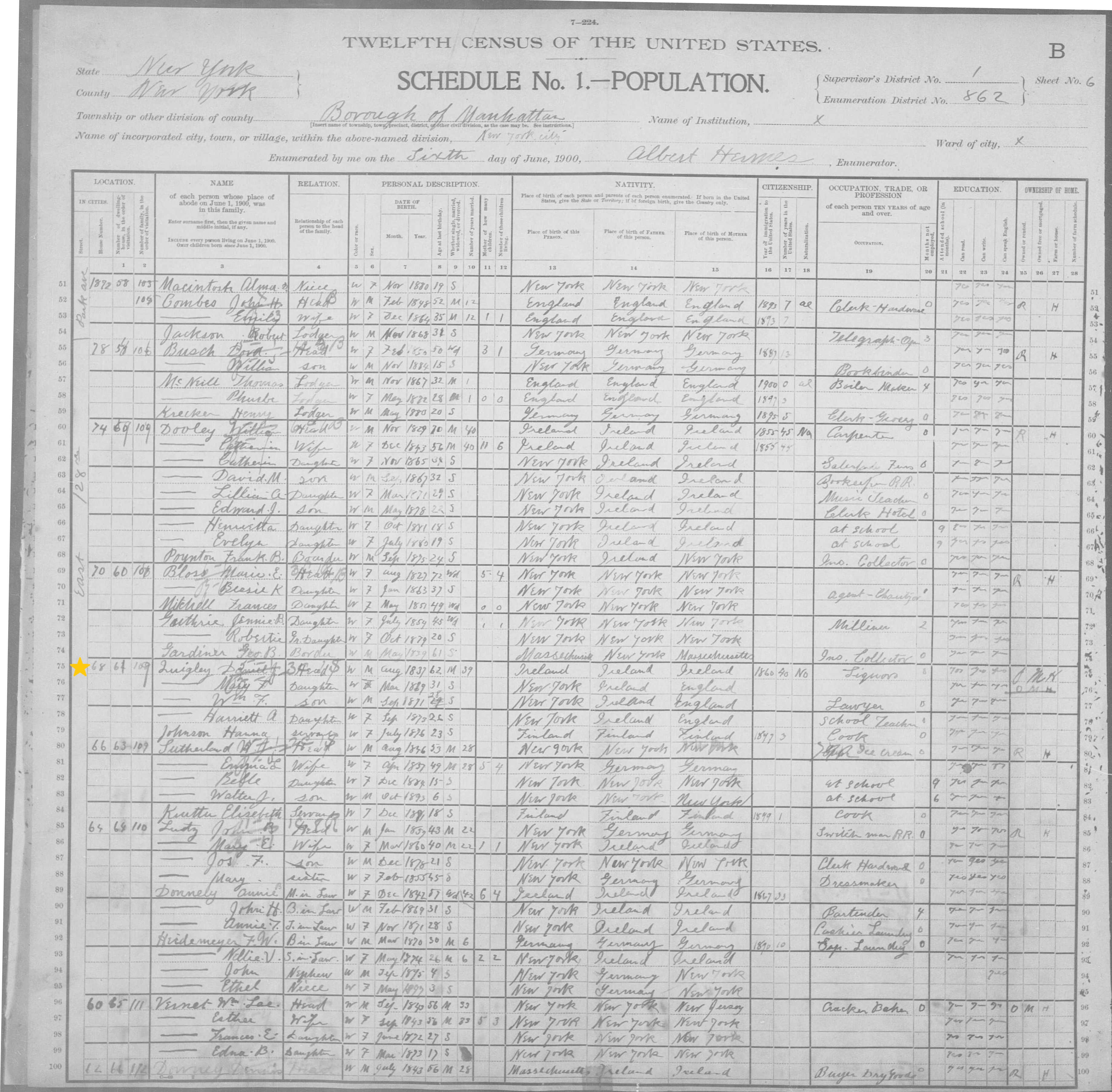Daniel J. Quigley; 1900 Census