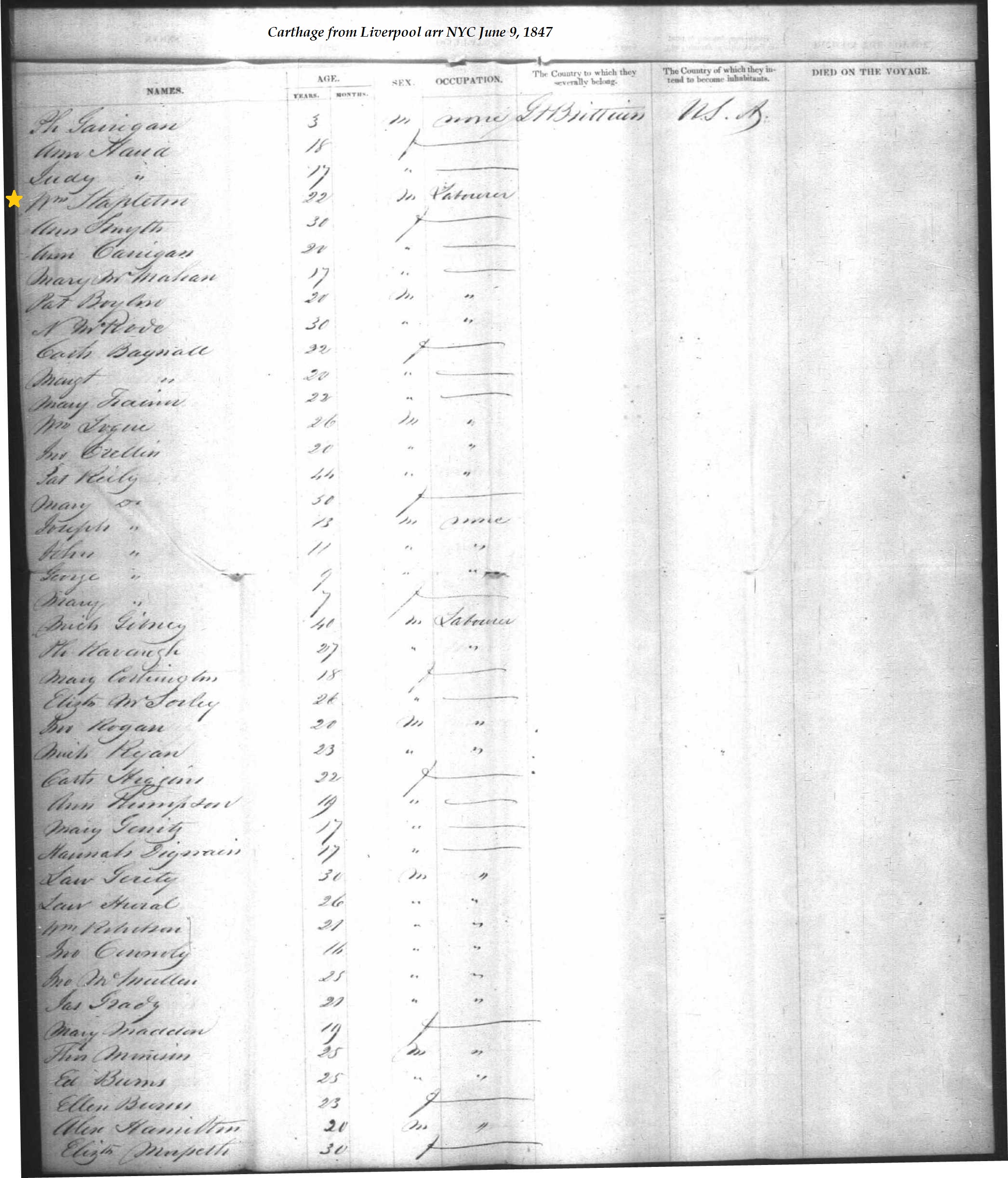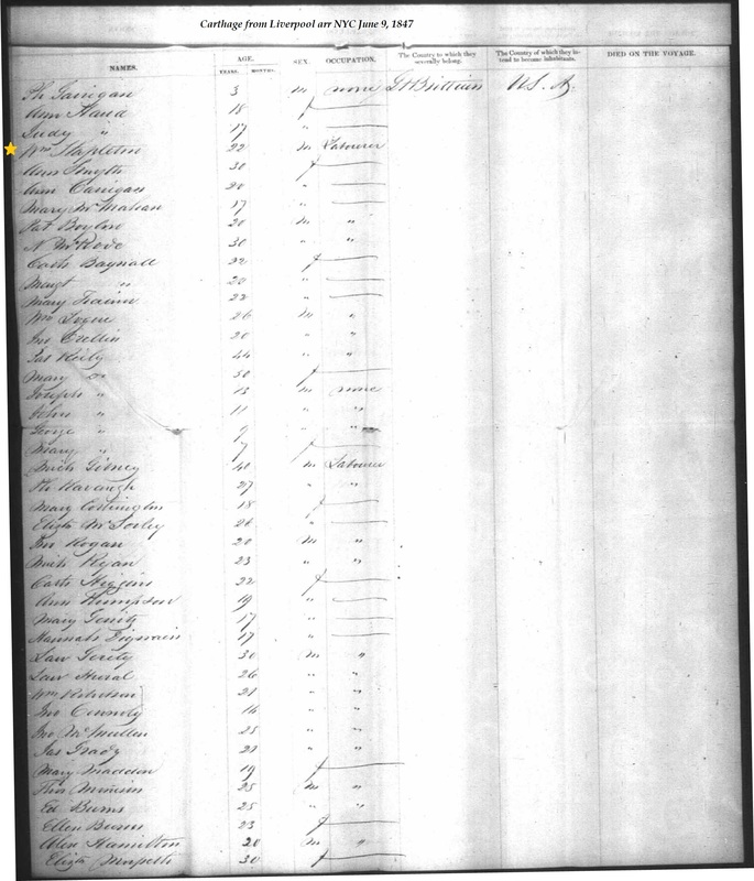 William Stapleton on Ship Manifest
