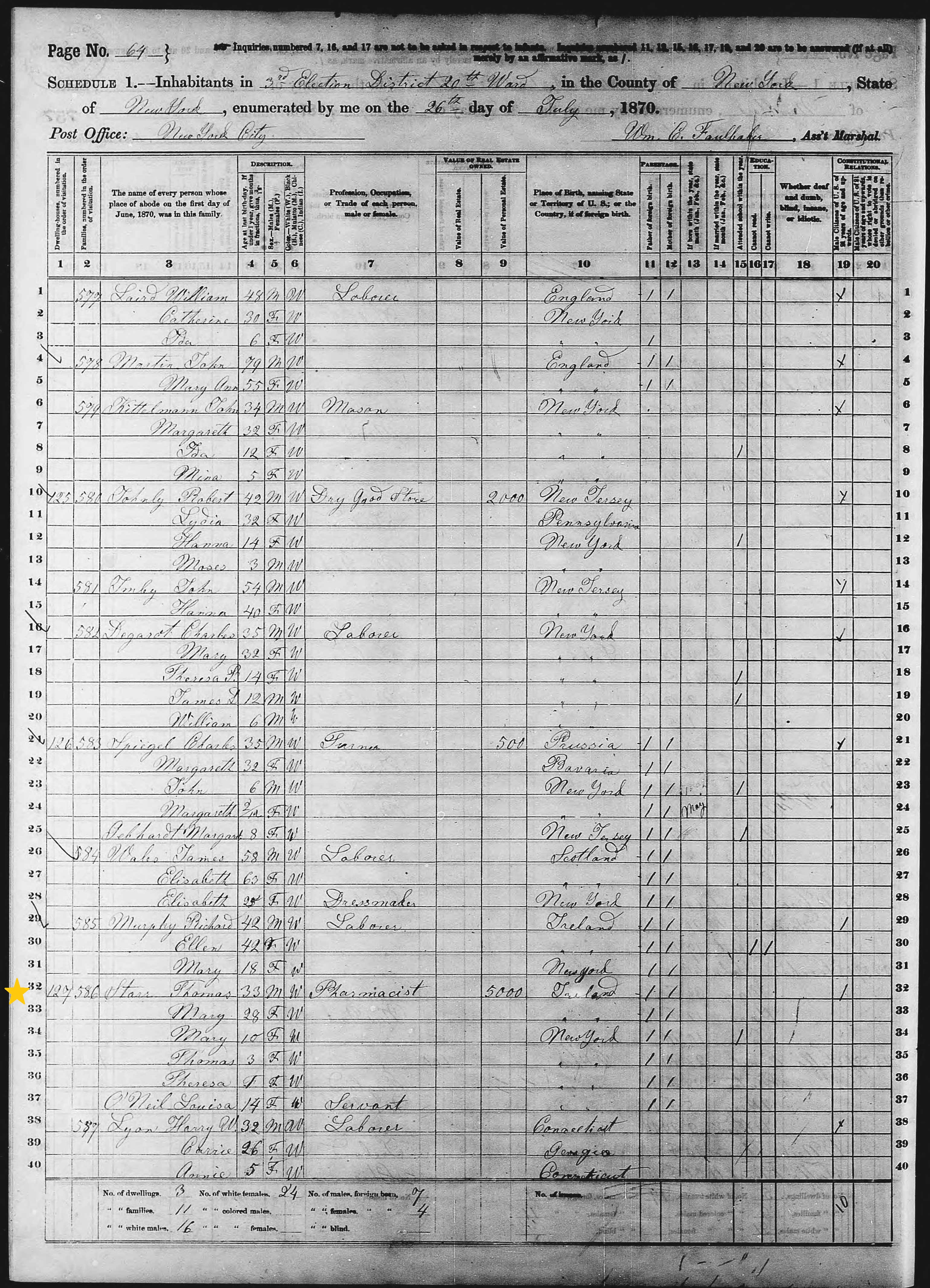 Thomas Starr; 1870 Census