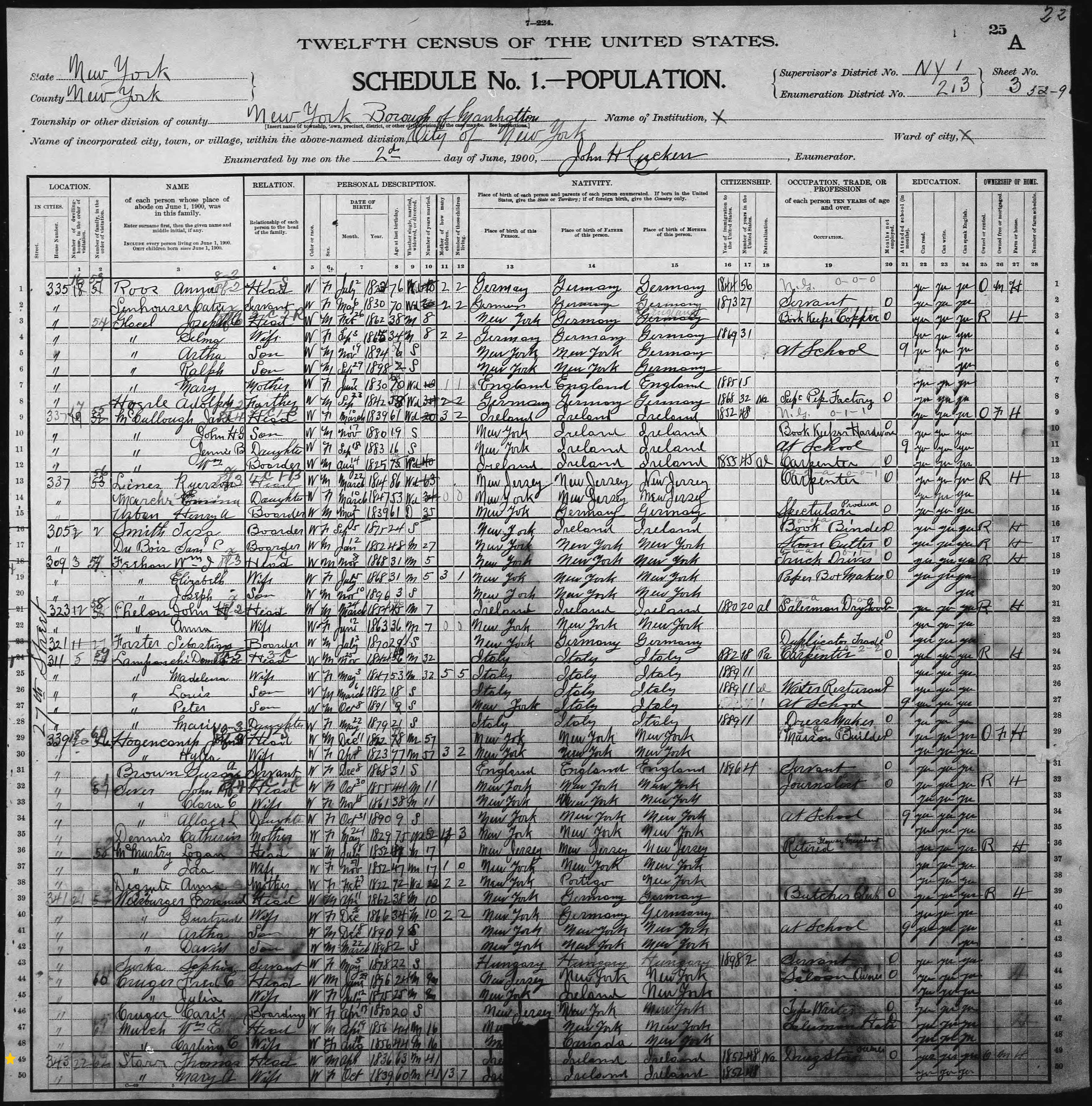 Thomas Starr; 1900 Census (1)