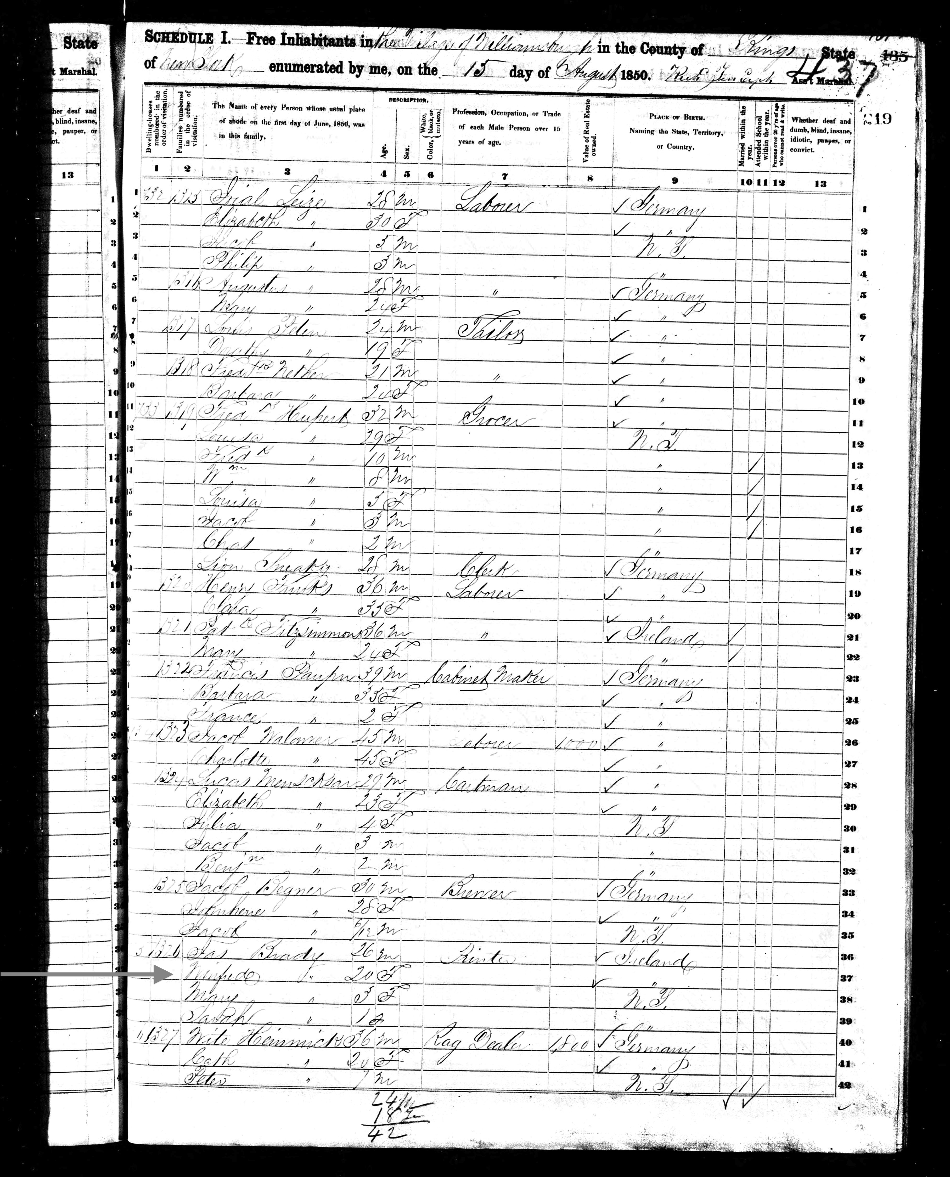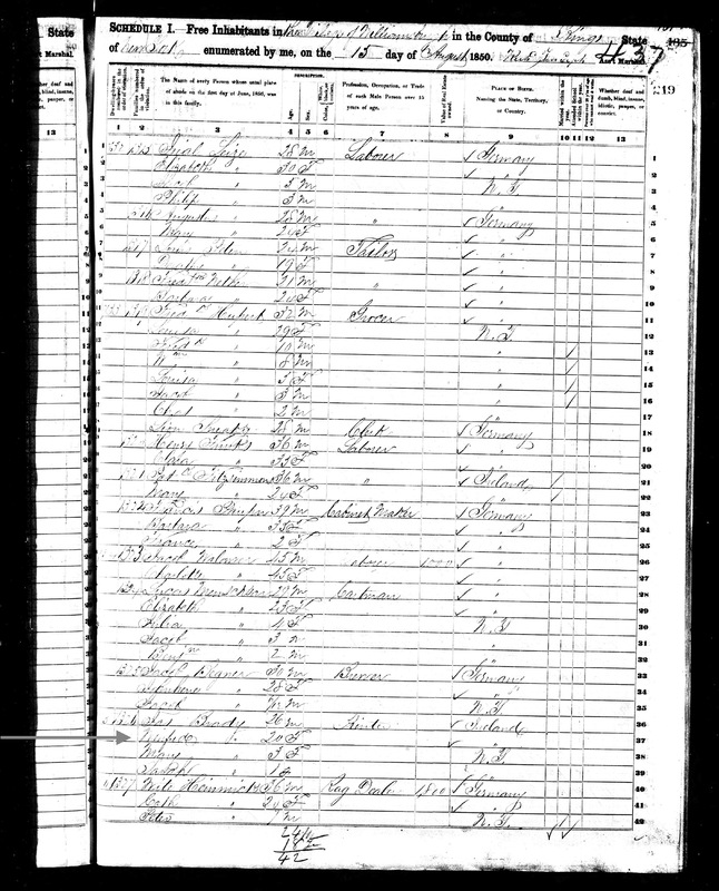 Winifred Brady; 1850 Census